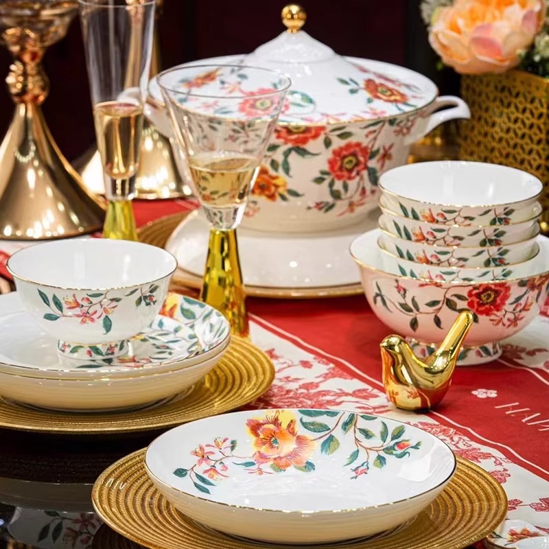 碗碟套装家用景德镇2025新款轻奢中式碗盘子乔迁新居新婚餐具套装