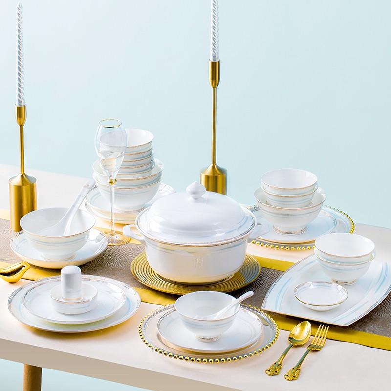 碗碟套装家用 全套骨瓷餐具套装 陶瓷简约景德镇碗盘碗筷礼品