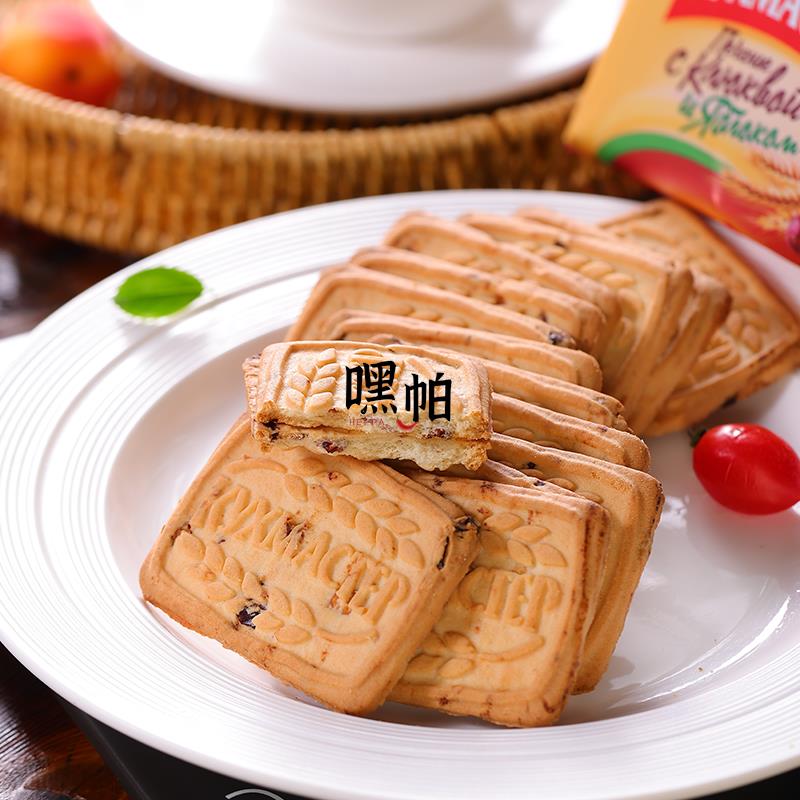 俄罗斯进口早餐饼干特浓牛奶巧克力蔓越莓味老式微甜薄脆酥零食品
