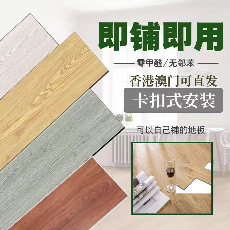 spc锁扣地板零醛家用改造防水卡扣式石晶PVC石塑地板鱼骨纹人字拼