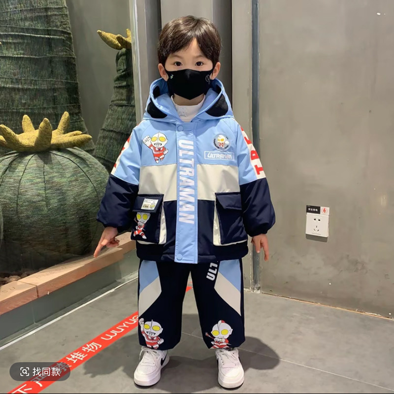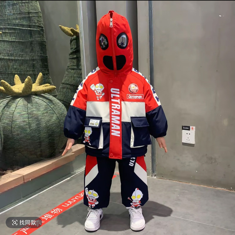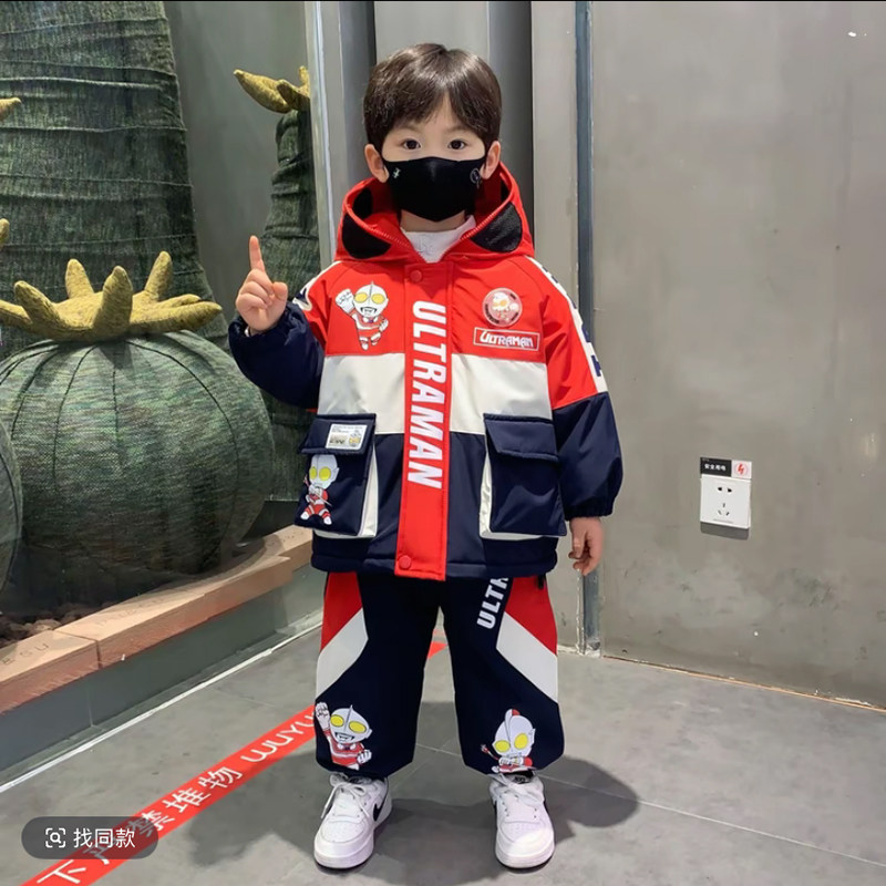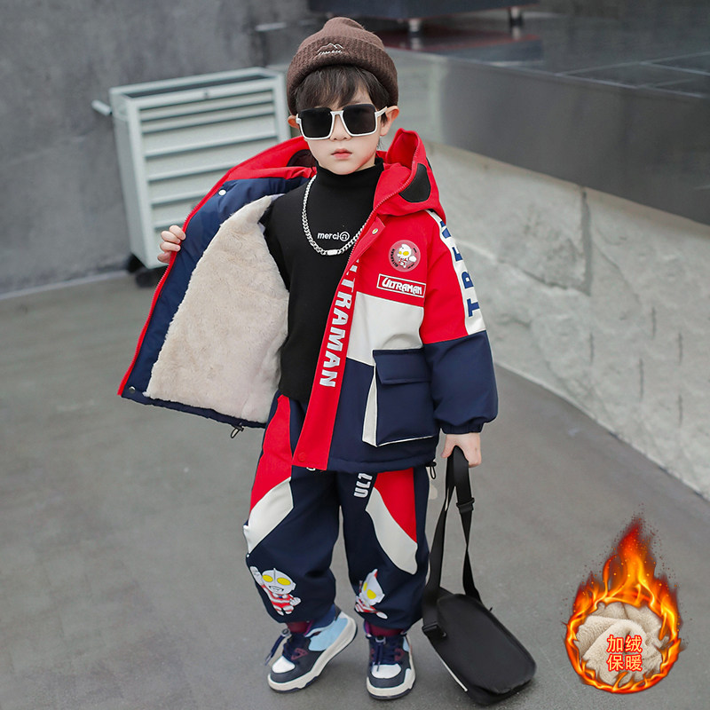 奥特曼衣服儿童加绒套装宝宝冬装男童加厚棉服两件套男孩冬季棉袄
