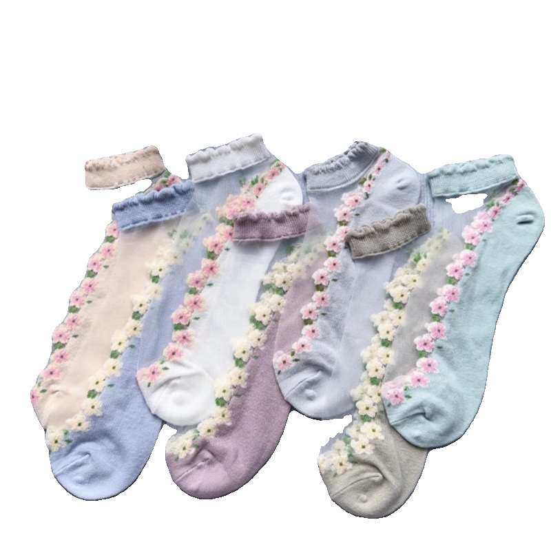 薄款卡丝袜夏季花边水晶船袜透气吸汗短袜春夏薄款袜子女袜子船袜