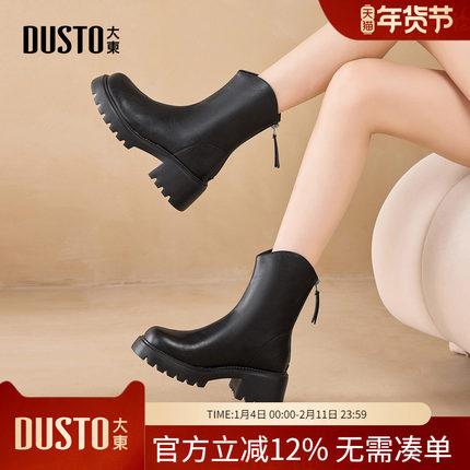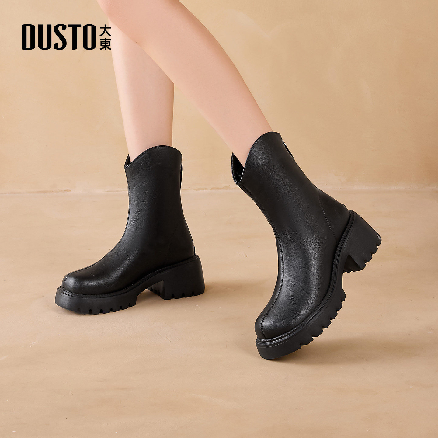 大东dd黑色短靴女2025新款冬季厚底马丁靴复古切尔西女靴子烟筒靴