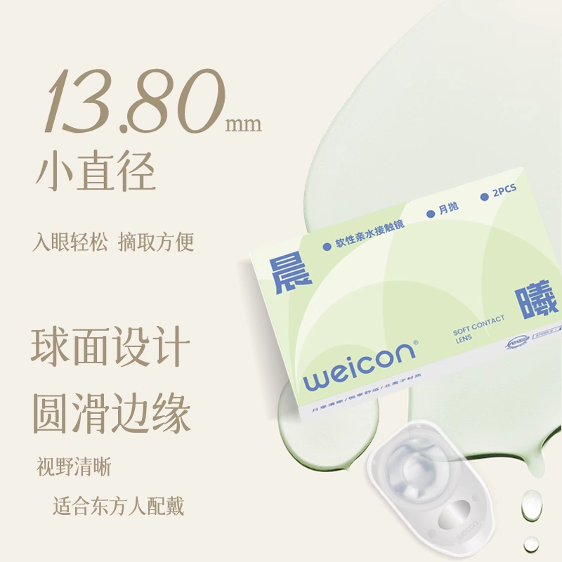 卫康晨曦月抛隐形眼镜旅行装近视水凝胶水润透氧高清透明片2片
