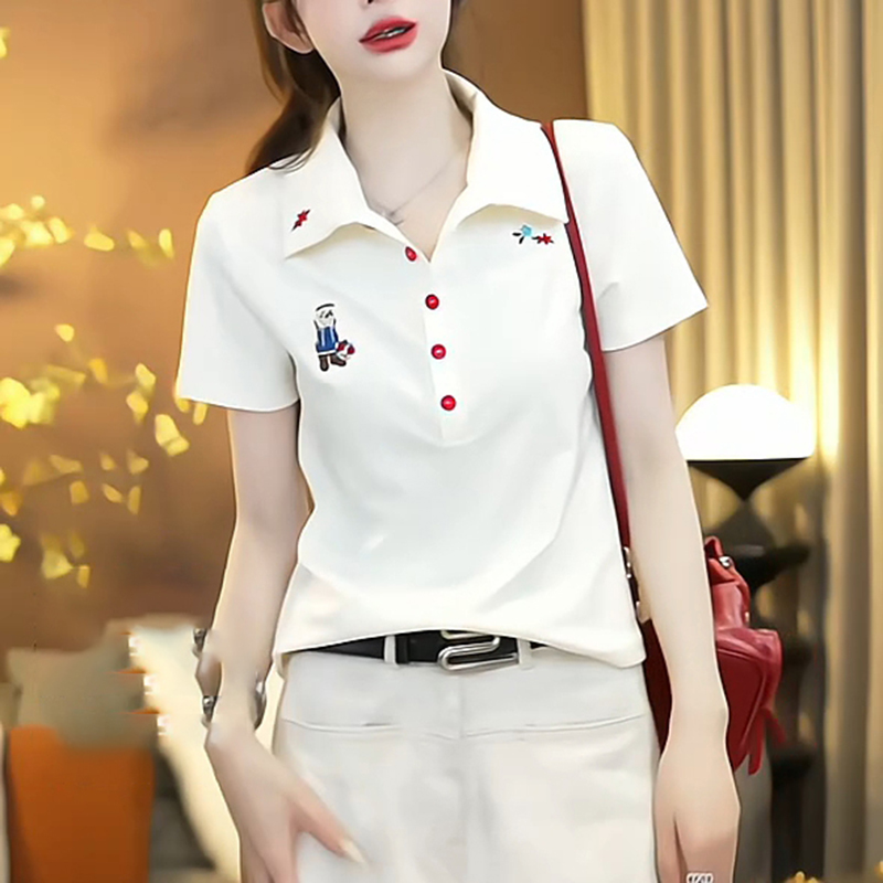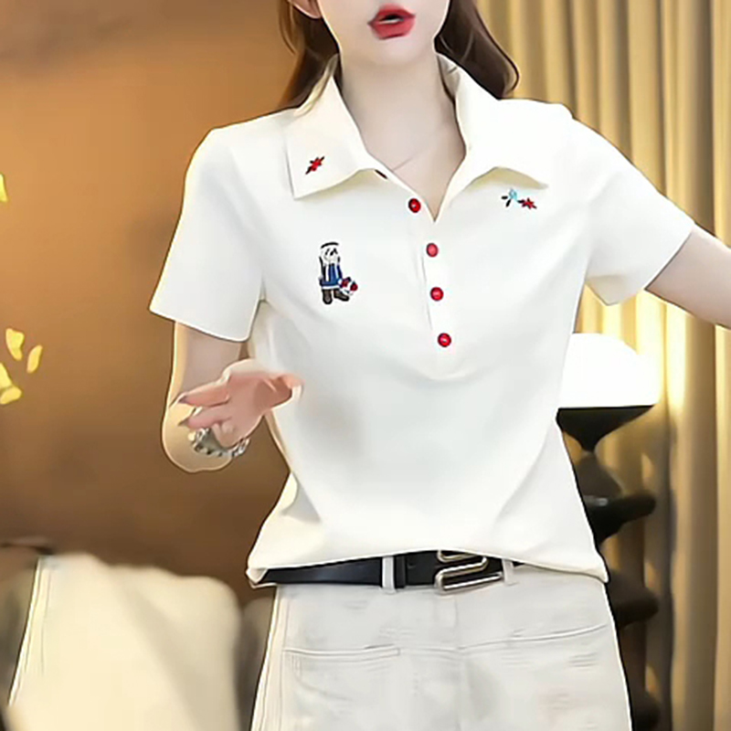 欧货设计感彩色刺绣短袖翻领衬衫女夏季新款洋气百搭修身显瘦小衫