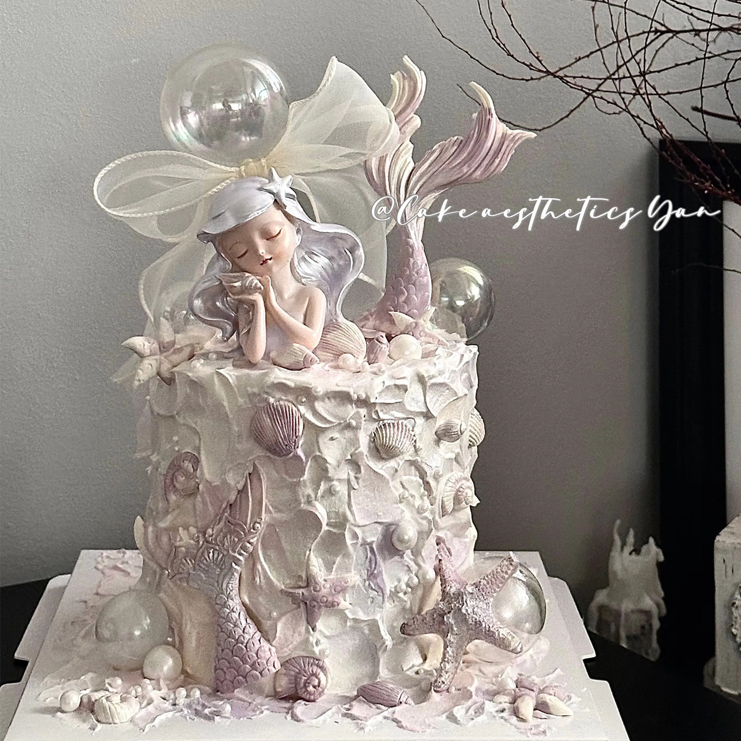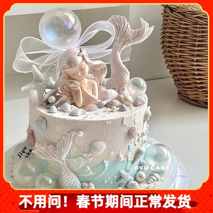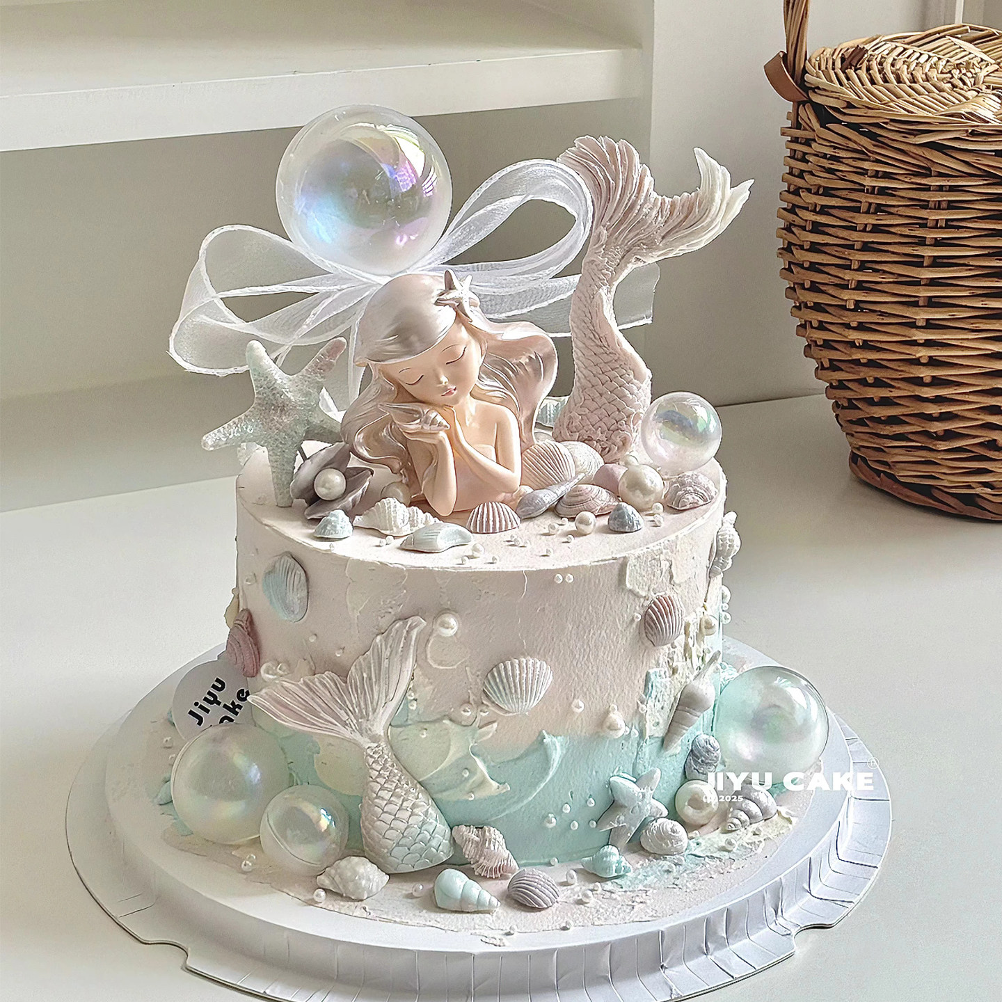 氛围感海洋公主人鱼蛋糕装饰梦幻童话贝壳海星鱼尾透明球插件配件