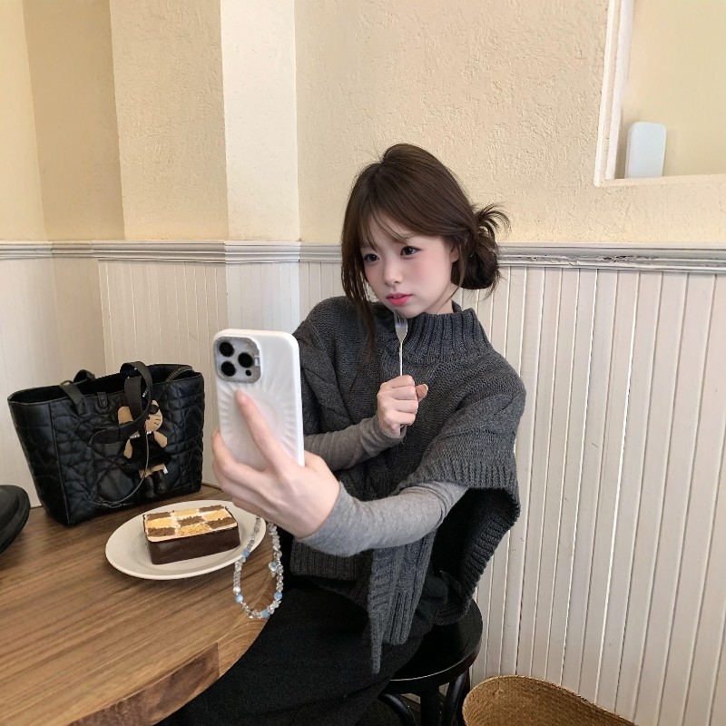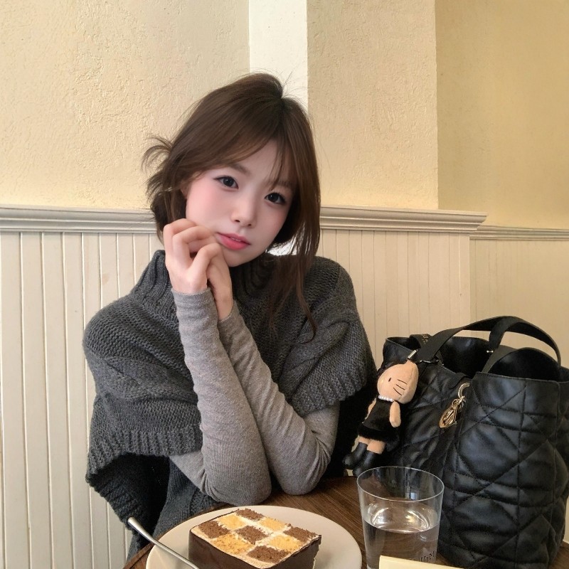 美式慵懒风灰色高领毛衣女春季简约休闲宽松氛围感百搭叠穿针织衫