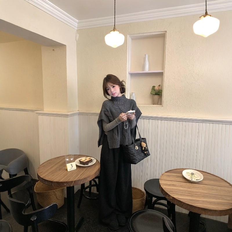 美式慵懒高领宽松针织衫女