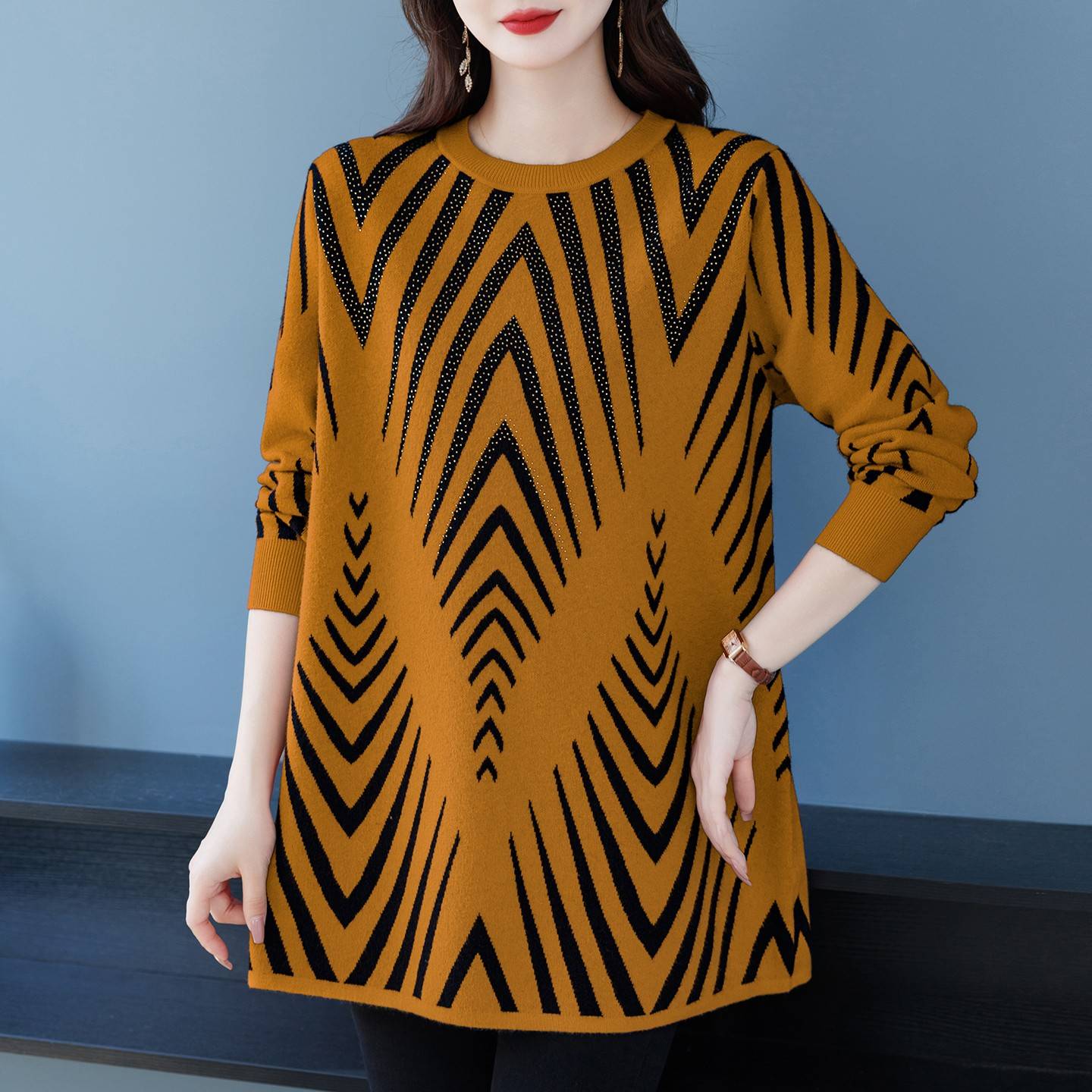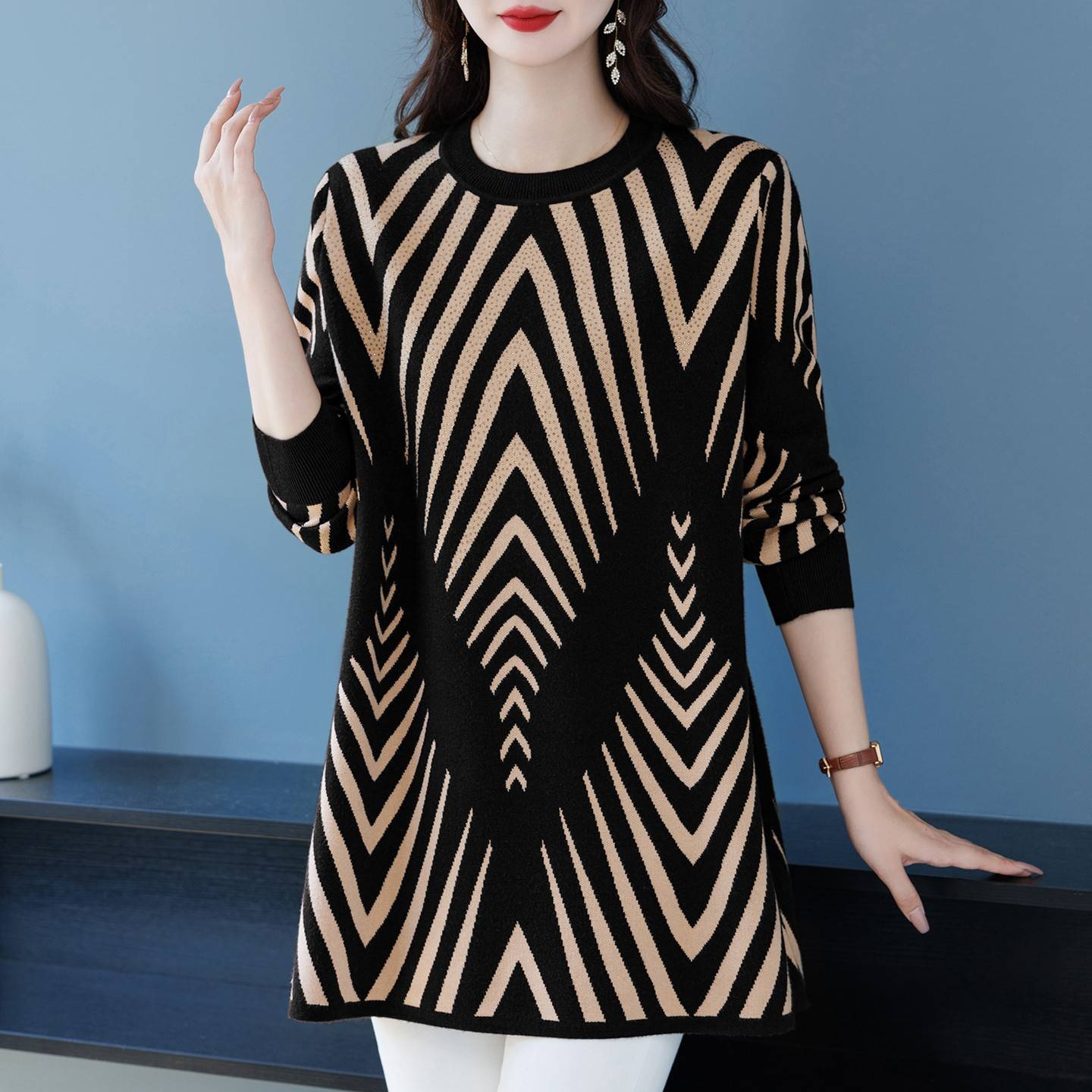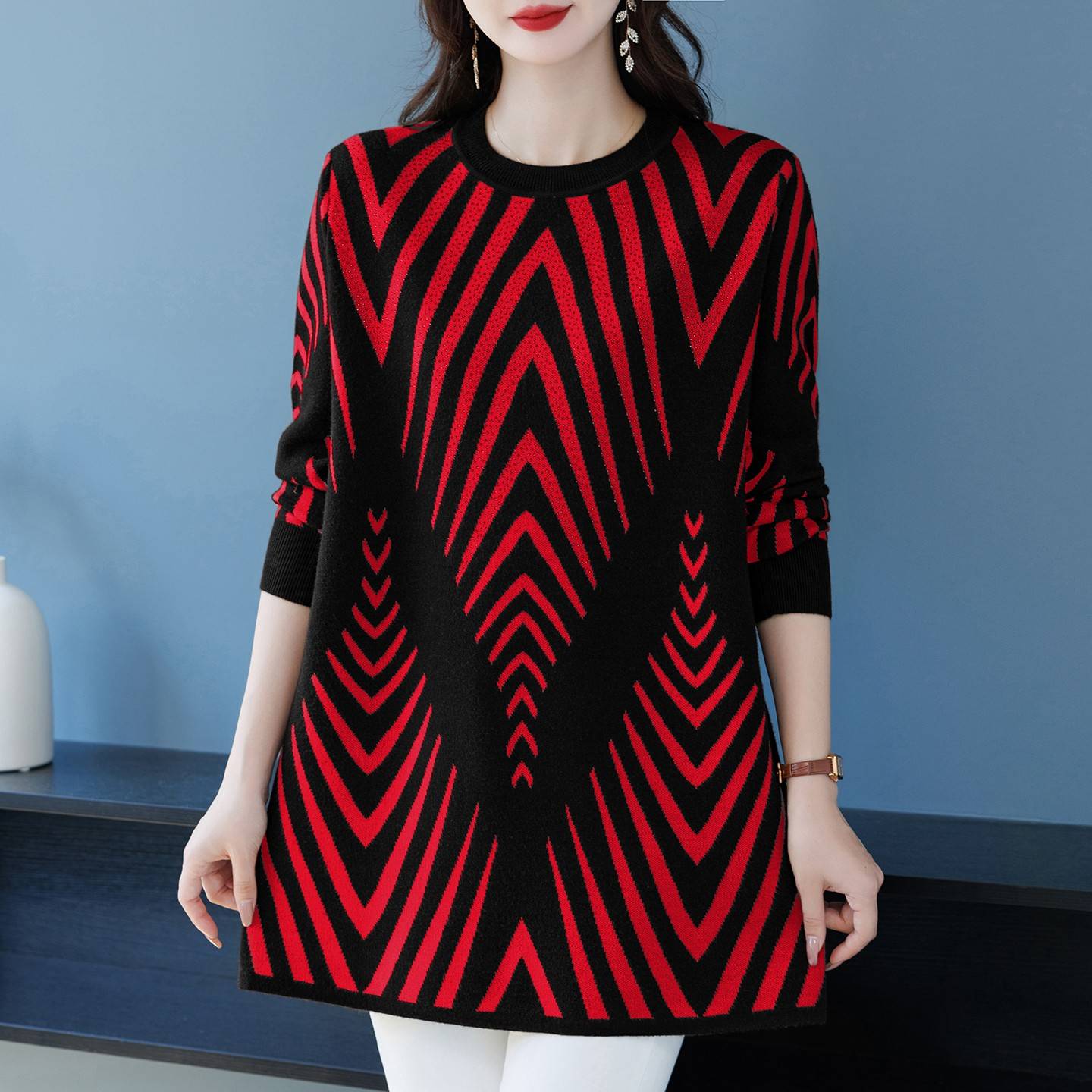 中老年妈妈洋气中长款毛衣秋冬加大码针织衫女宽松遮肚显瘦打底衫