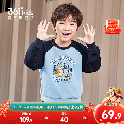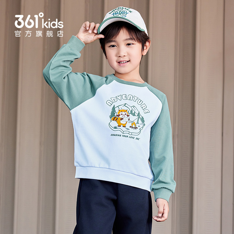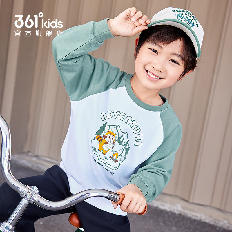 361°童装男童运动套头卫衣2026春秋拼接印花可爱新款小童上衣