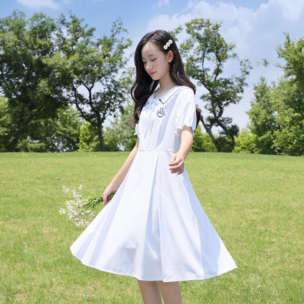 初中女生竖条纹显瘦连衣裙高中学院风公主裙学生夏装中长款裙子