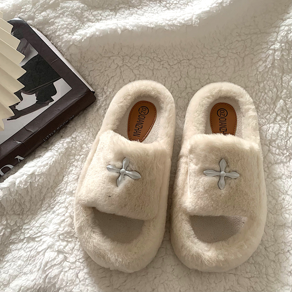 金屿鹿赵露思同款厚底毛毛拖鞋女外穿秋冬新款时尚网红防滑棉拖鞋