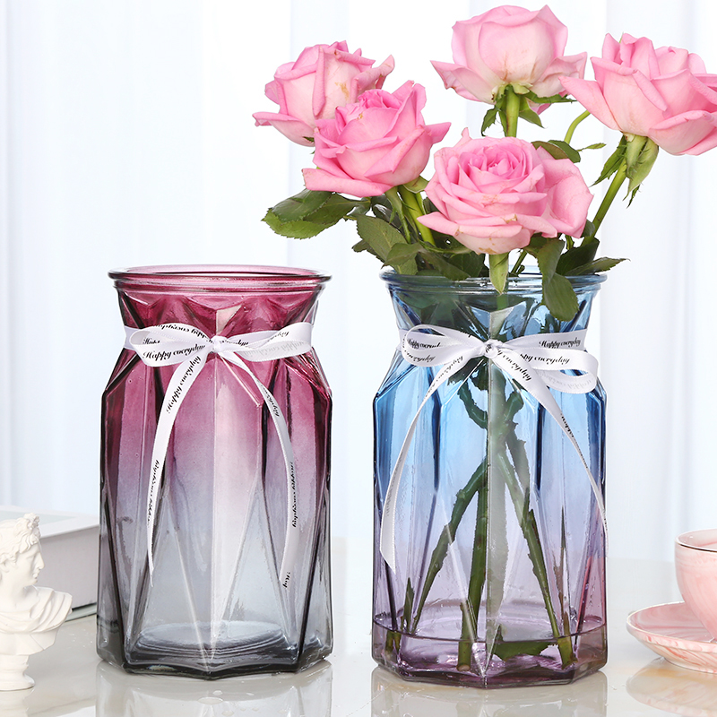 【花瓶2个】玻璃花瓶彩色欧式客厅创意摆件插花玫瑰 水培透明家用