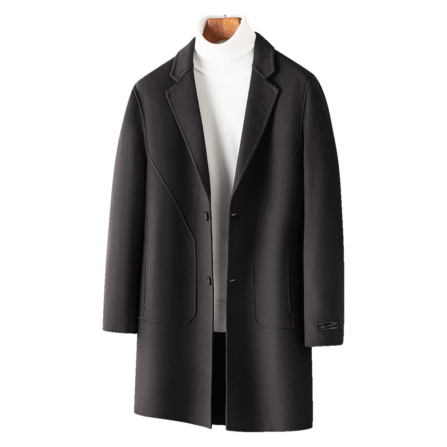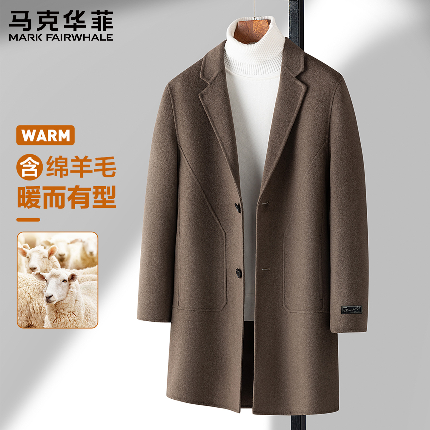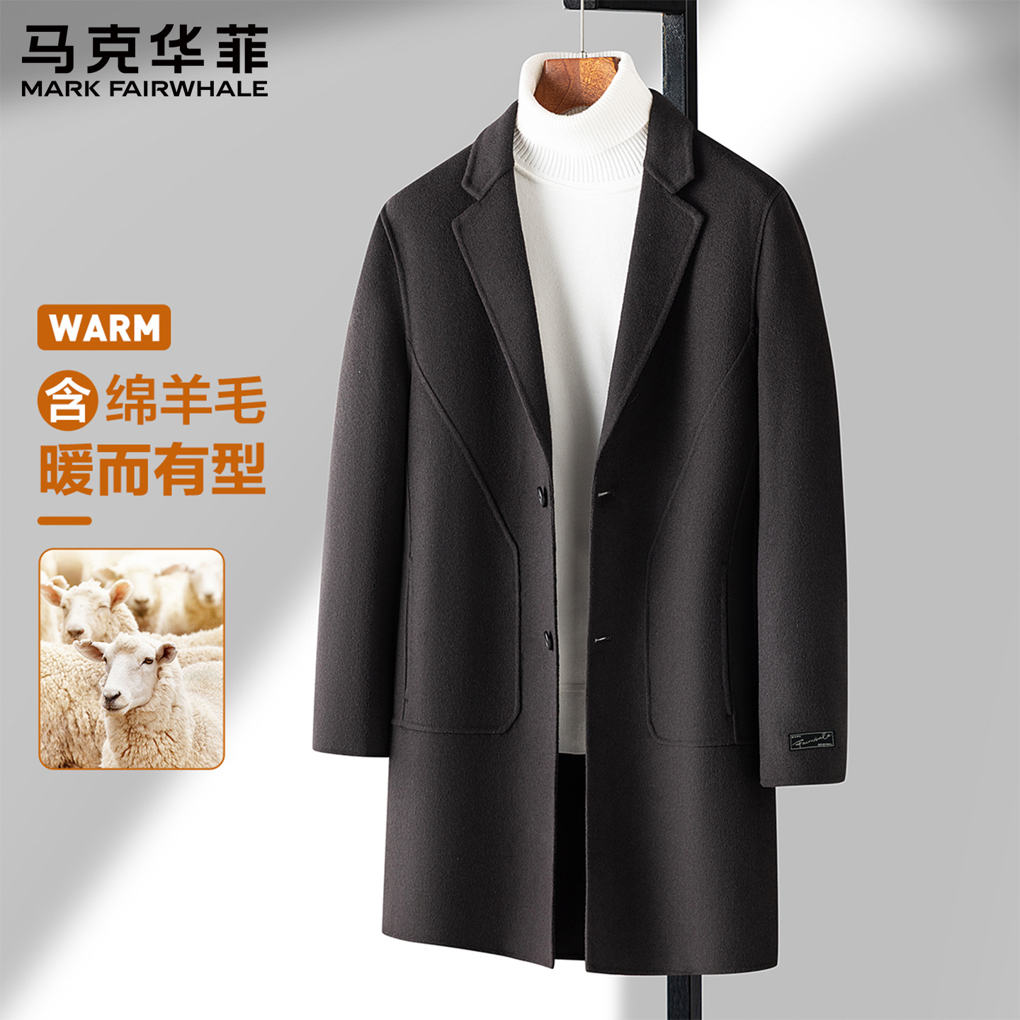 马克华菲绵羊毛高端毛呢外套男2025秋冬新款中长款西装领保暖大衣