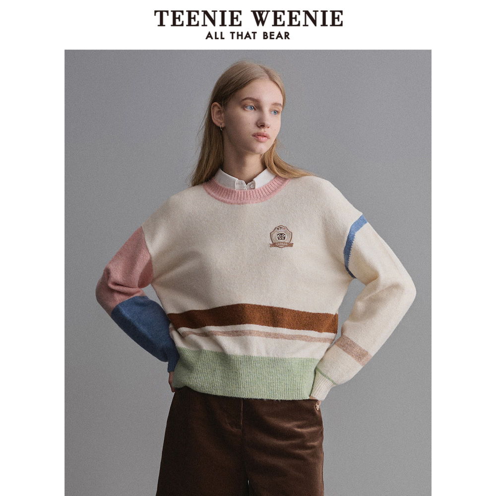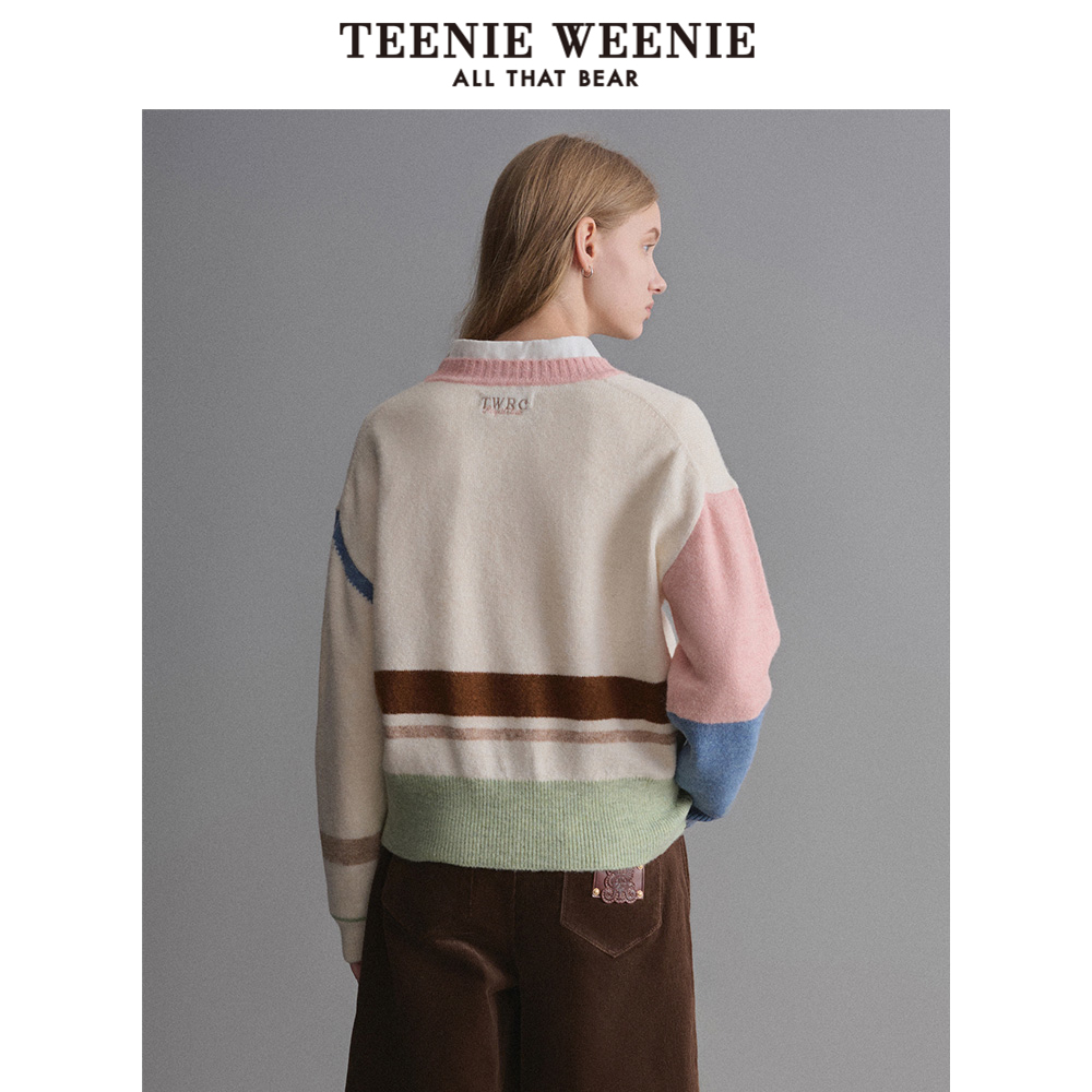 TeenieWeenie小熊奥莱秋季设计感马卡龙撞色毛衣针织衫上衣女