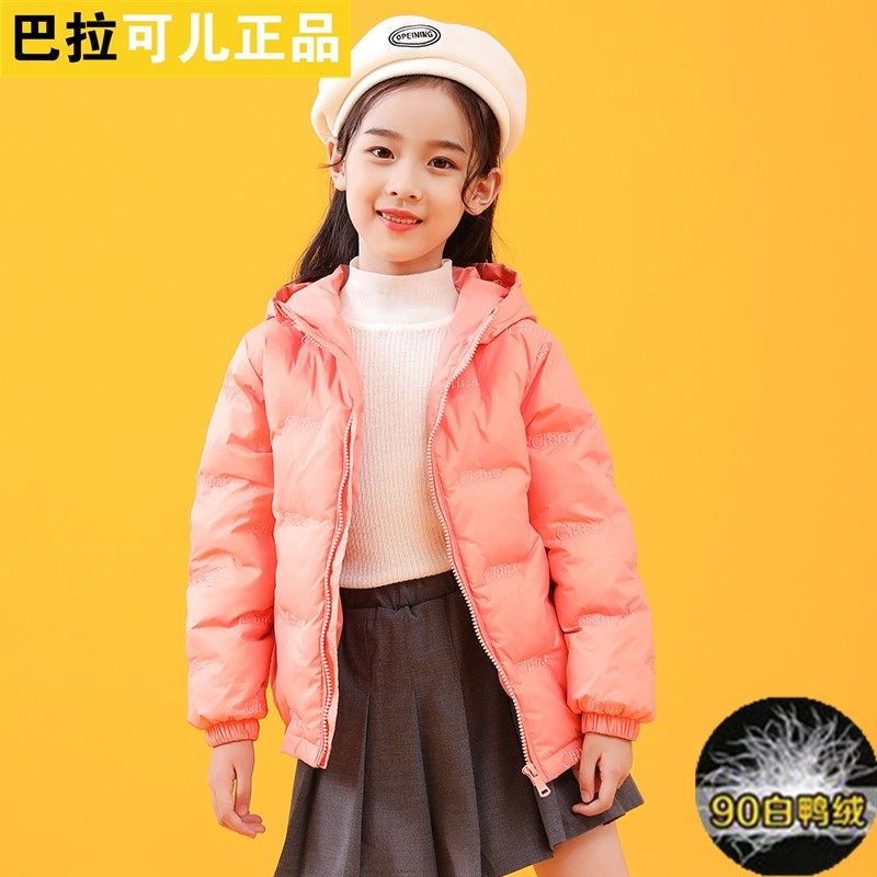 巴拉可儿女童羽绒服短款儿童冬季加厚中大童宝宝男童轻薄羽绒外套