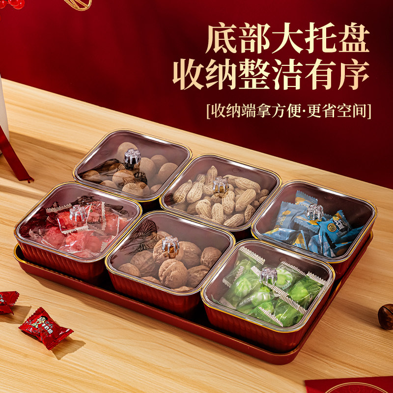 新款多层干果盘客厅茶几家用喜庆节日糖果盒坚果盘中式零食摆放盘