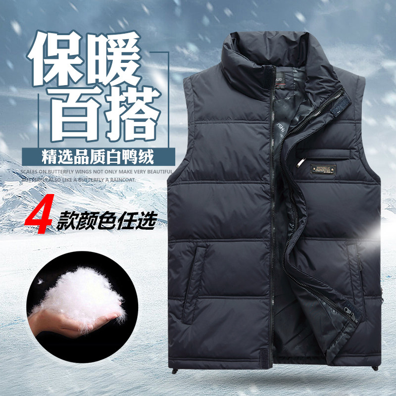 冬季羽绒马甲男装大码宽松背心中老年人加绒加厚保暖立领马夹外套