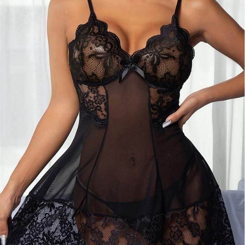 Sexy Sash Nightdress for women 性感蕾丝镂空吊带睡裙女睡衣