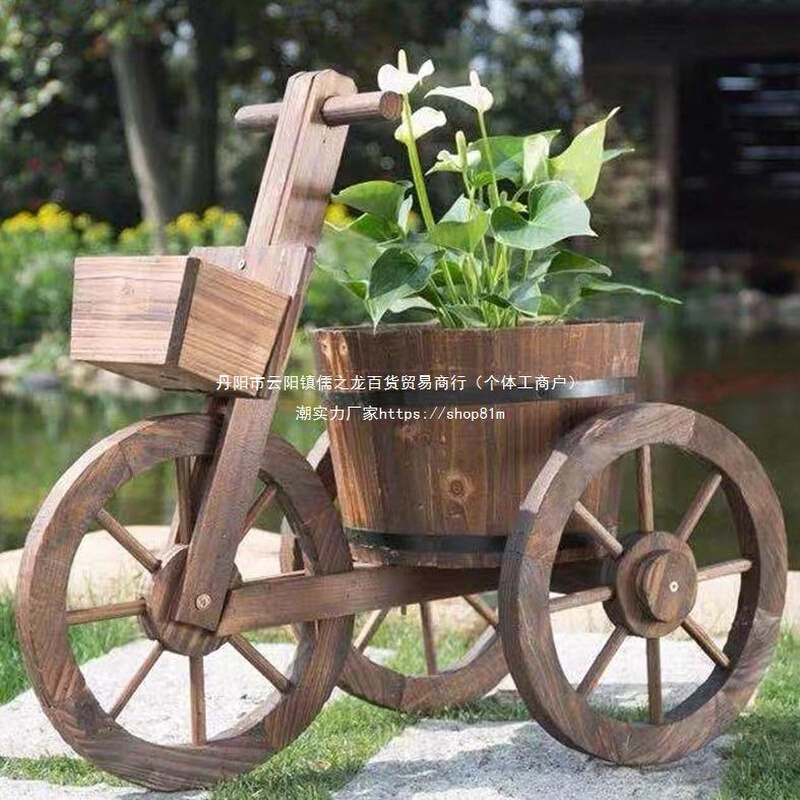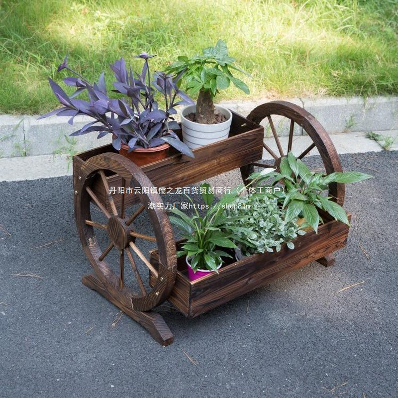 碳化防腐木庭院花园装饰种植盆户外阳台实木花箱木质花盆架花车