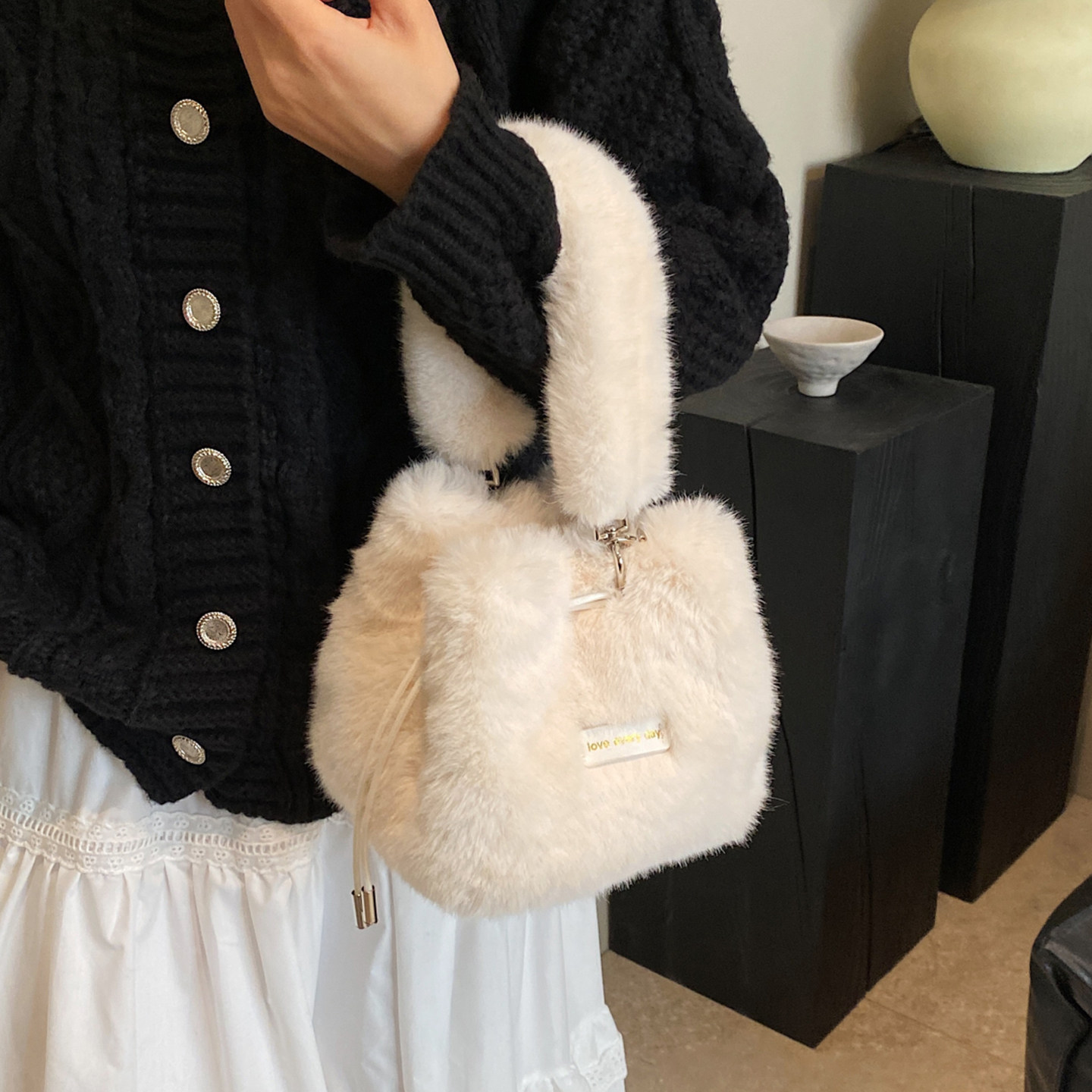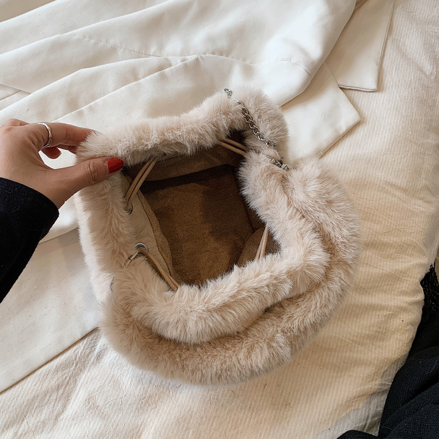毛绒包包女2025新款洋气毛毛手提包链条单肩斜挎包百搭迷你水桶包