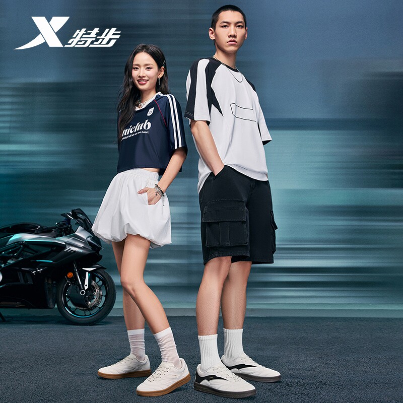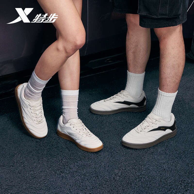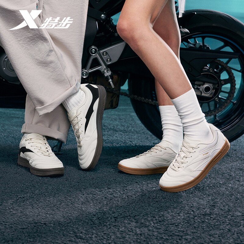 特步德训鞋丨男鞋革面鞋冬季经典薄底男女平底赛车鞋潮流休闲鞋子