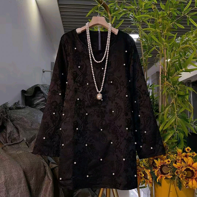 大码女装欧货重工钉珠中长款大衫