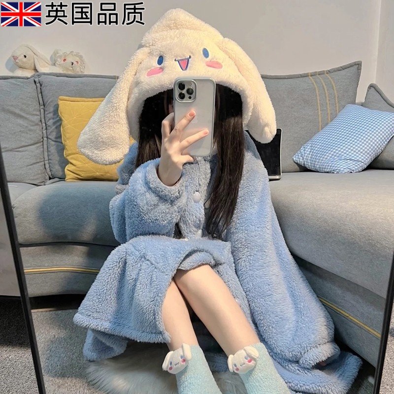 英国品质玉桂狗珊瑚绒睡衣女秋季冬季毛毛绒睡袍加厚长款浴袍睡裙