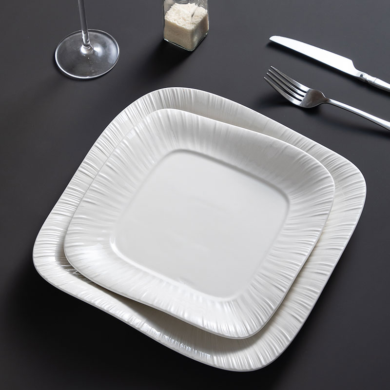 西餐牛排盘简约白色正方形陶瓷盘子创意家用菜盘平盘酒店餐厅餐具