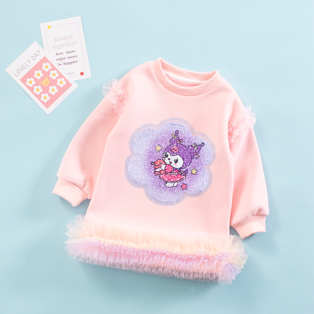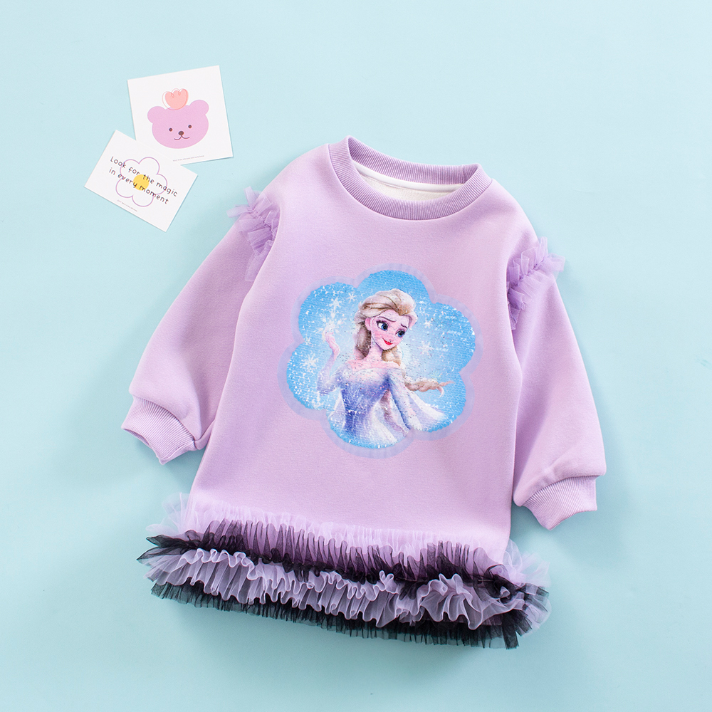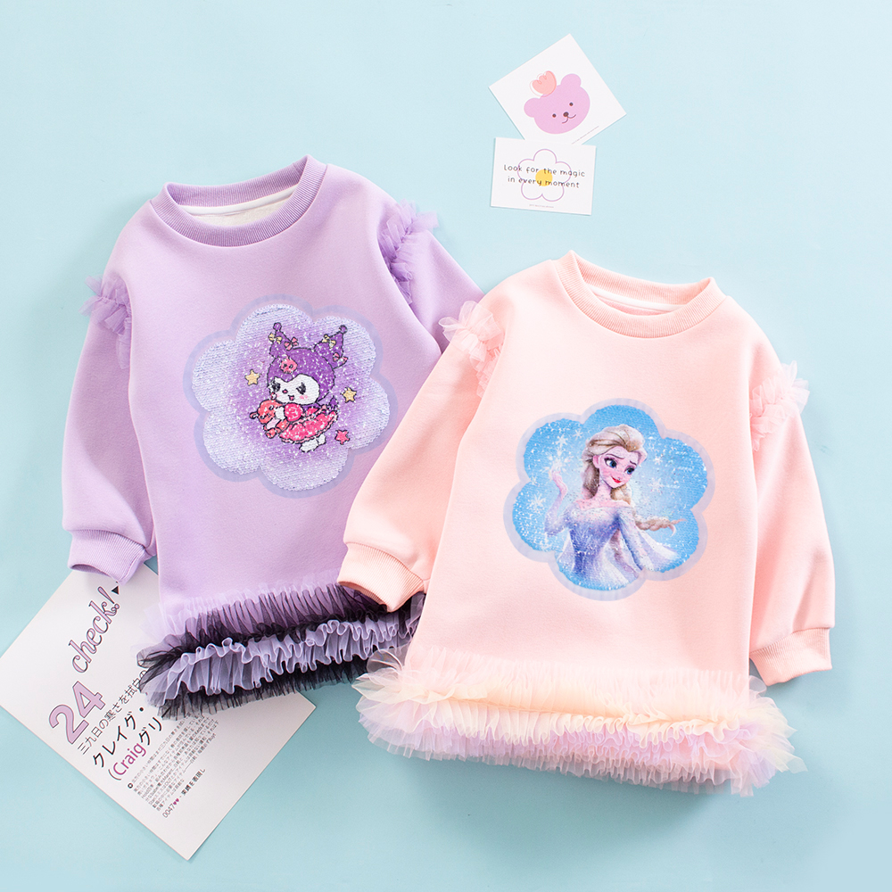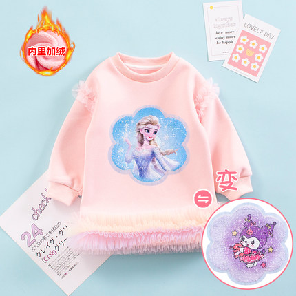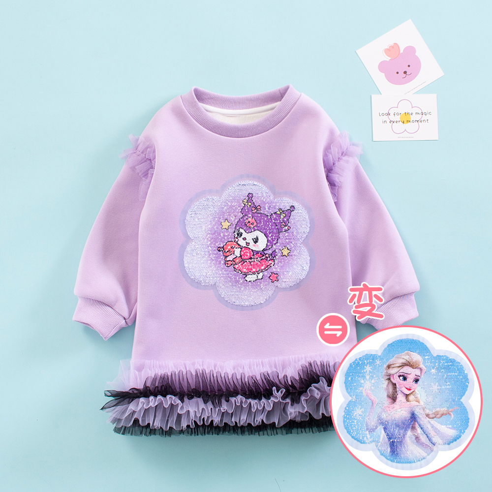 女童加绒裙子秋冬亮片变色衣服小女孩冰雪奇缘卫衣裙库洛米连衣裙