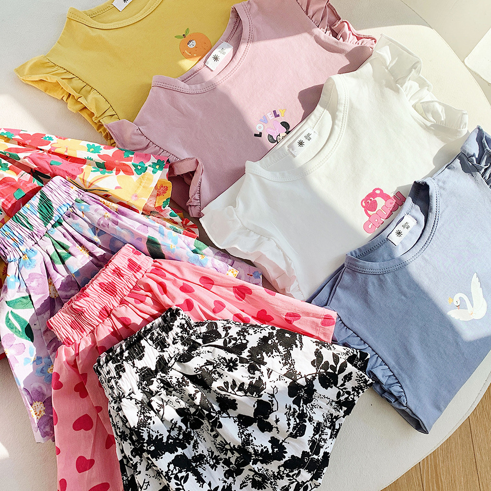 宝宝夏装套装2025新款女童韩版印花短袖两件套时髦洋气小女孩衣服