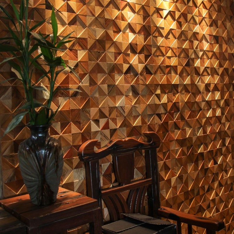 中式三角形方块乱拼内墙老船木原木纯实木马赛克电视背景墙隔删板