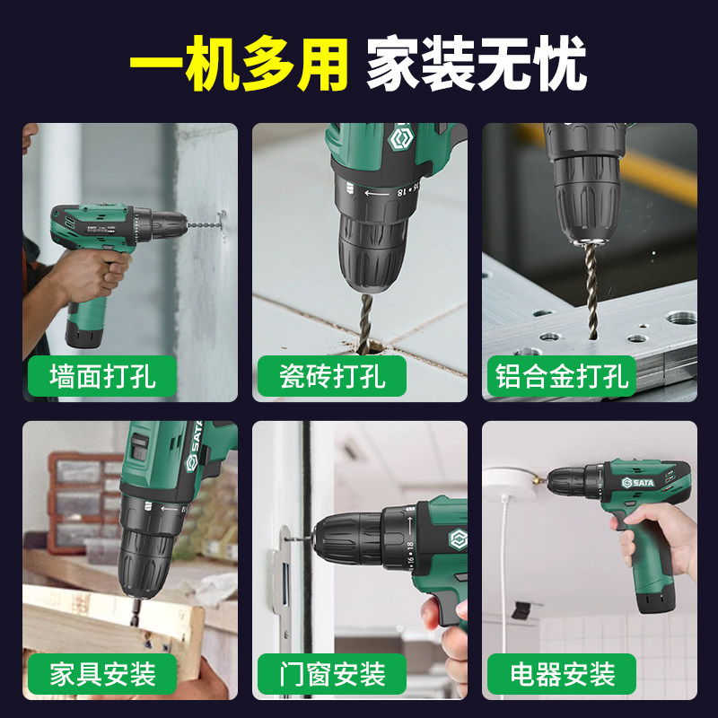 世达电钻电动螺丝刀家用冲击钻锂电转工具手枪钻充电式打孔手电钻