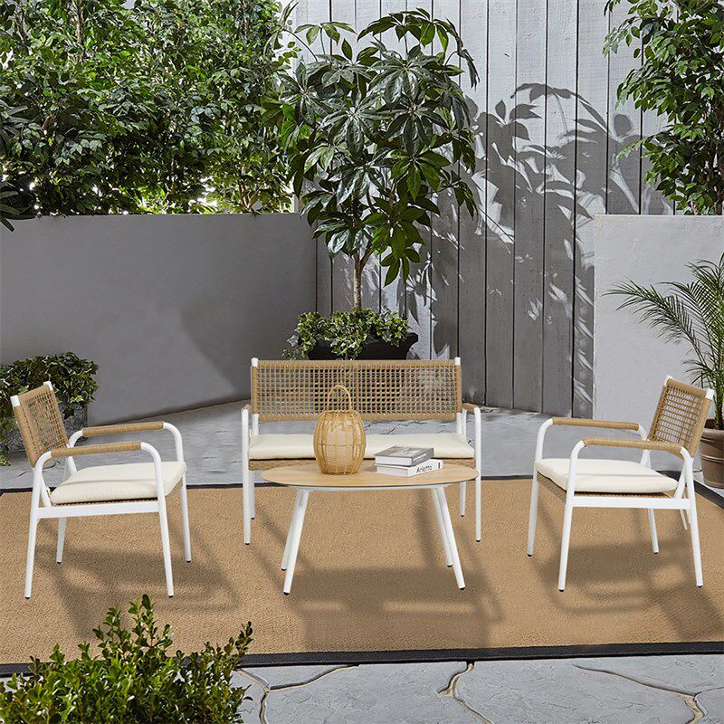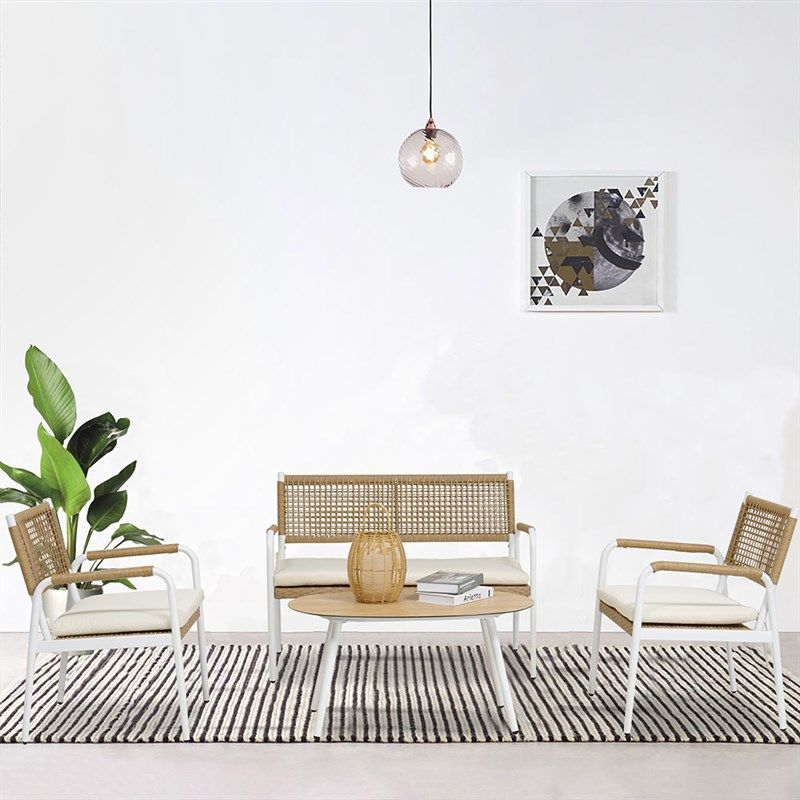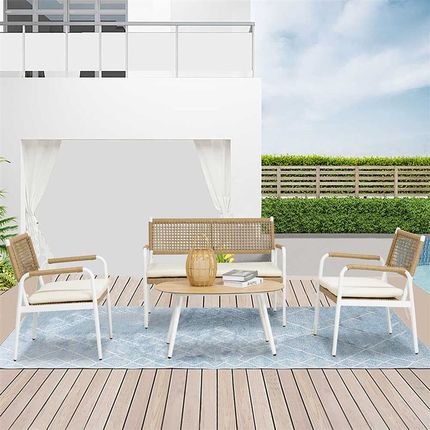 户外桌椅北欧藤编沙发组合防水防晒酒店阳台藤椅茶几露天咖啡厅