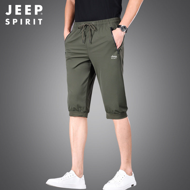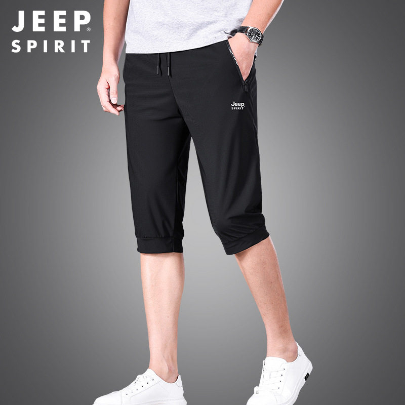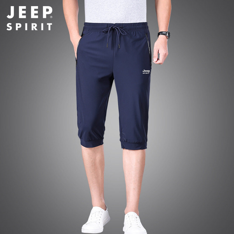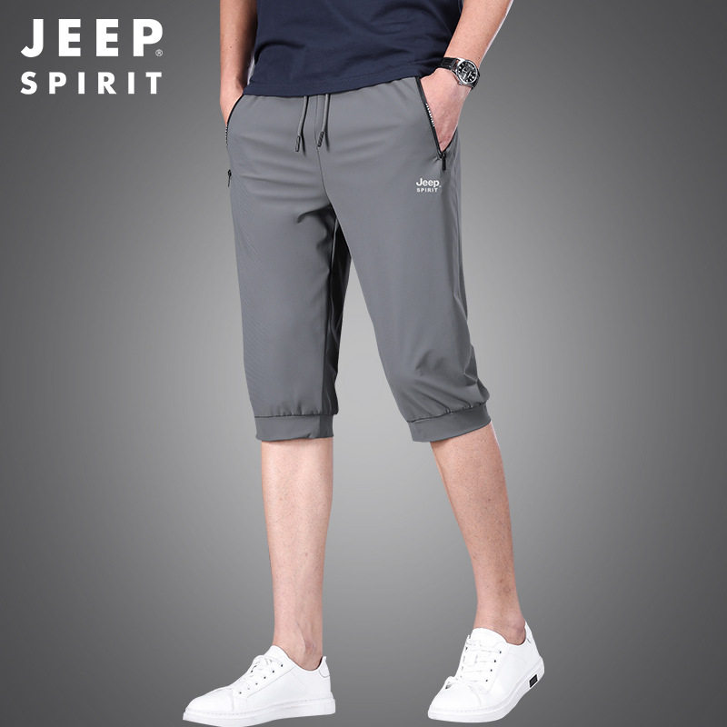 吉普冰丝七分裤男士夏季薄款速干休闲运动短裤子束脚五分中裤