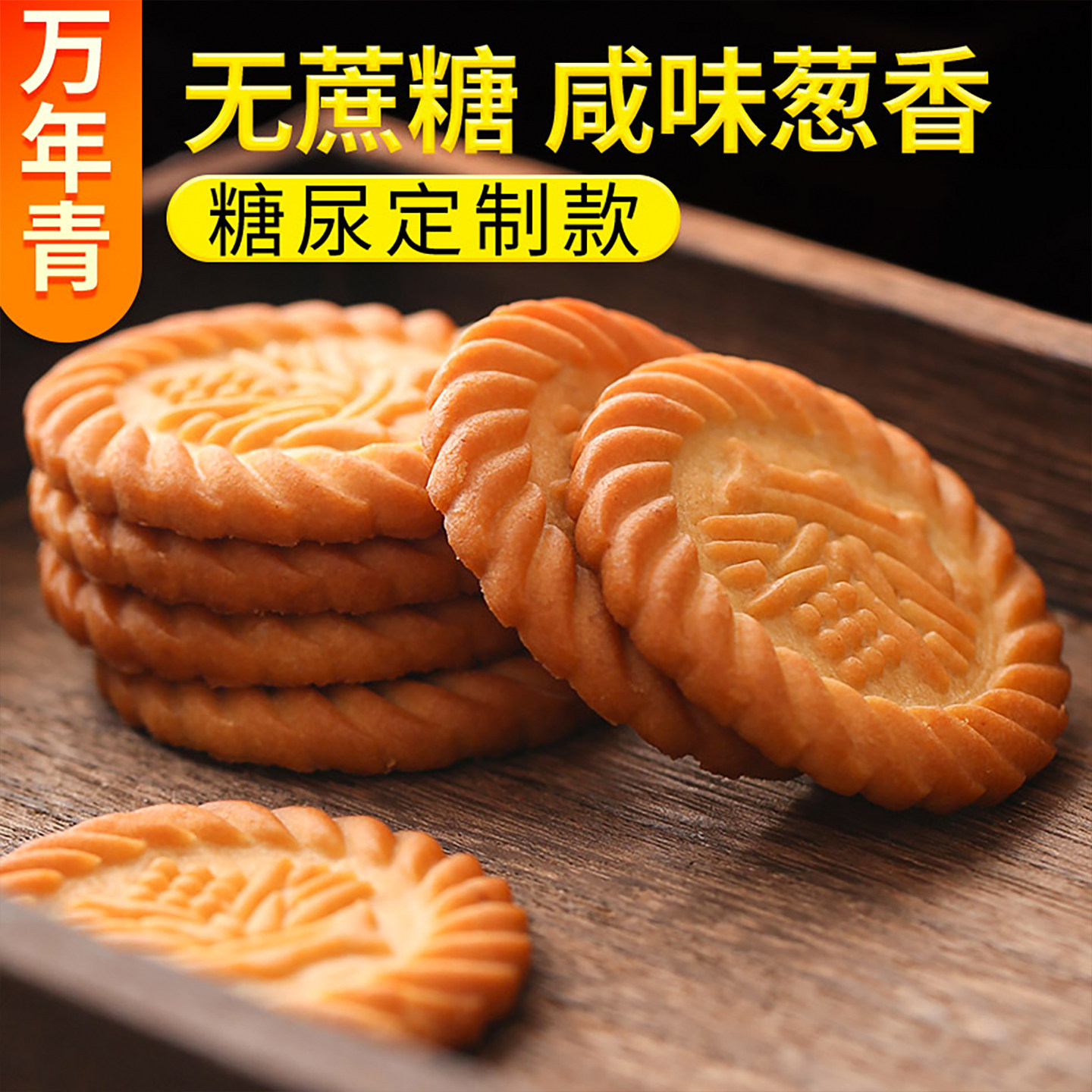 上海万年青无蔗糖饼干咸味香葱早餐中老年零食糖尿人专用孕妇食品