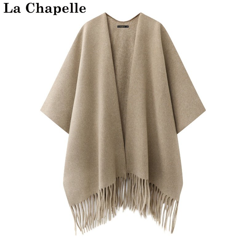 拉夏贝尔/La Chapelle秋冬款针织披肩女外搭新款时尚流苏斗篷开衫