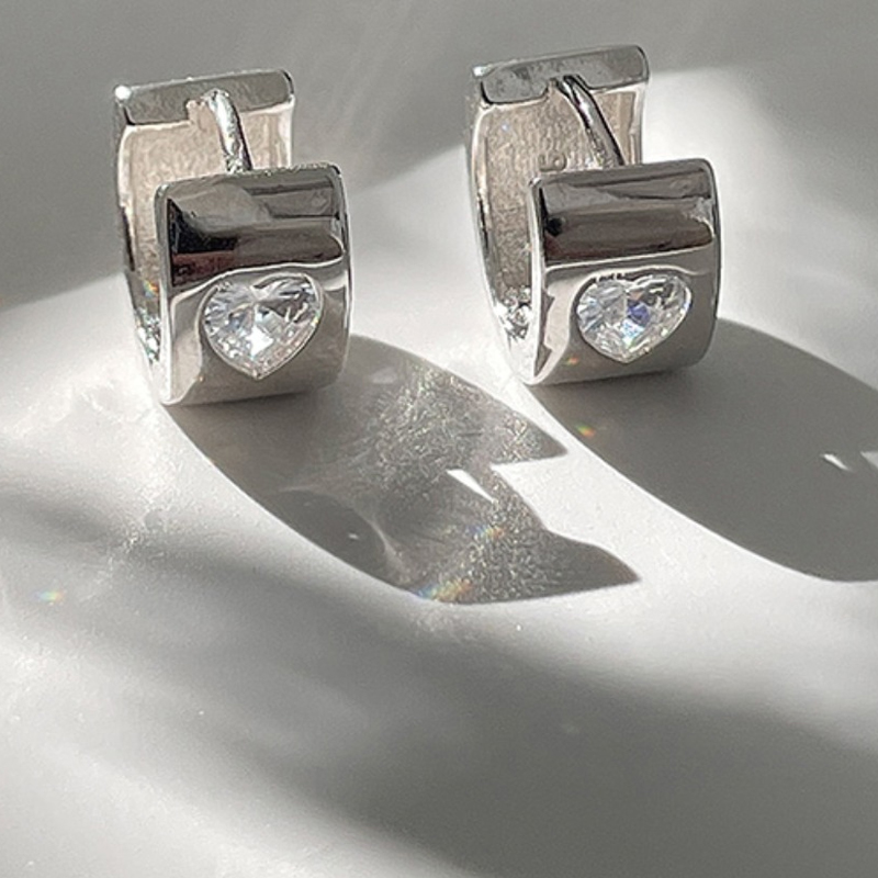 s925纯银爱心锆石素圈耳环气质名媛耳钉高级感耳饰爆款网红2022年
