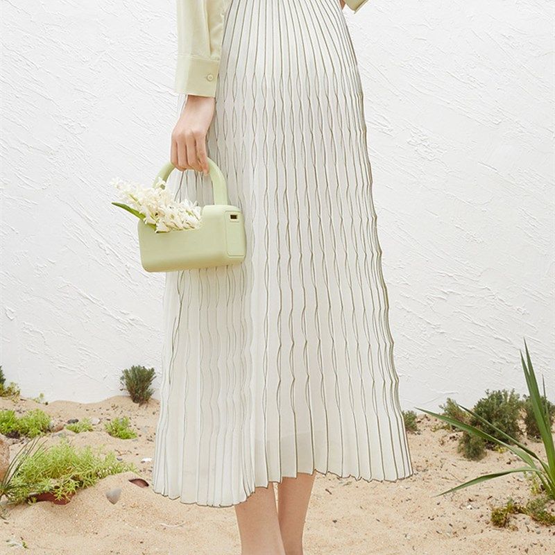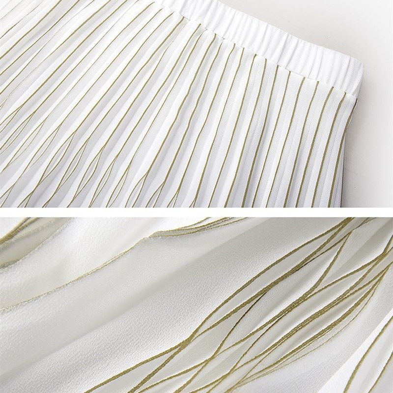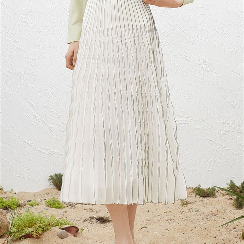 店长推荐2024白色雪纺百褶裙半身长裙立体波浪半身裙女A字裙夏