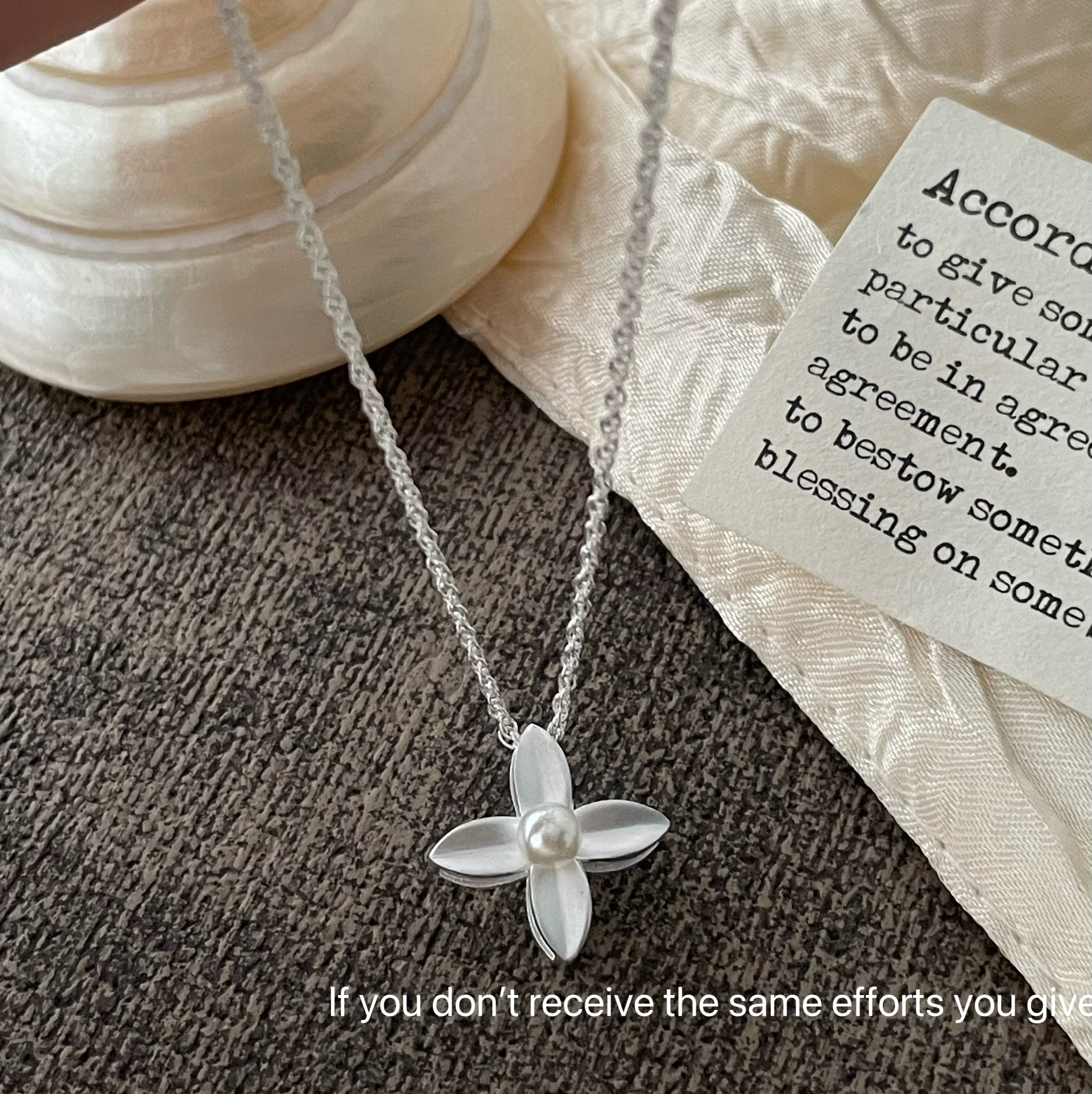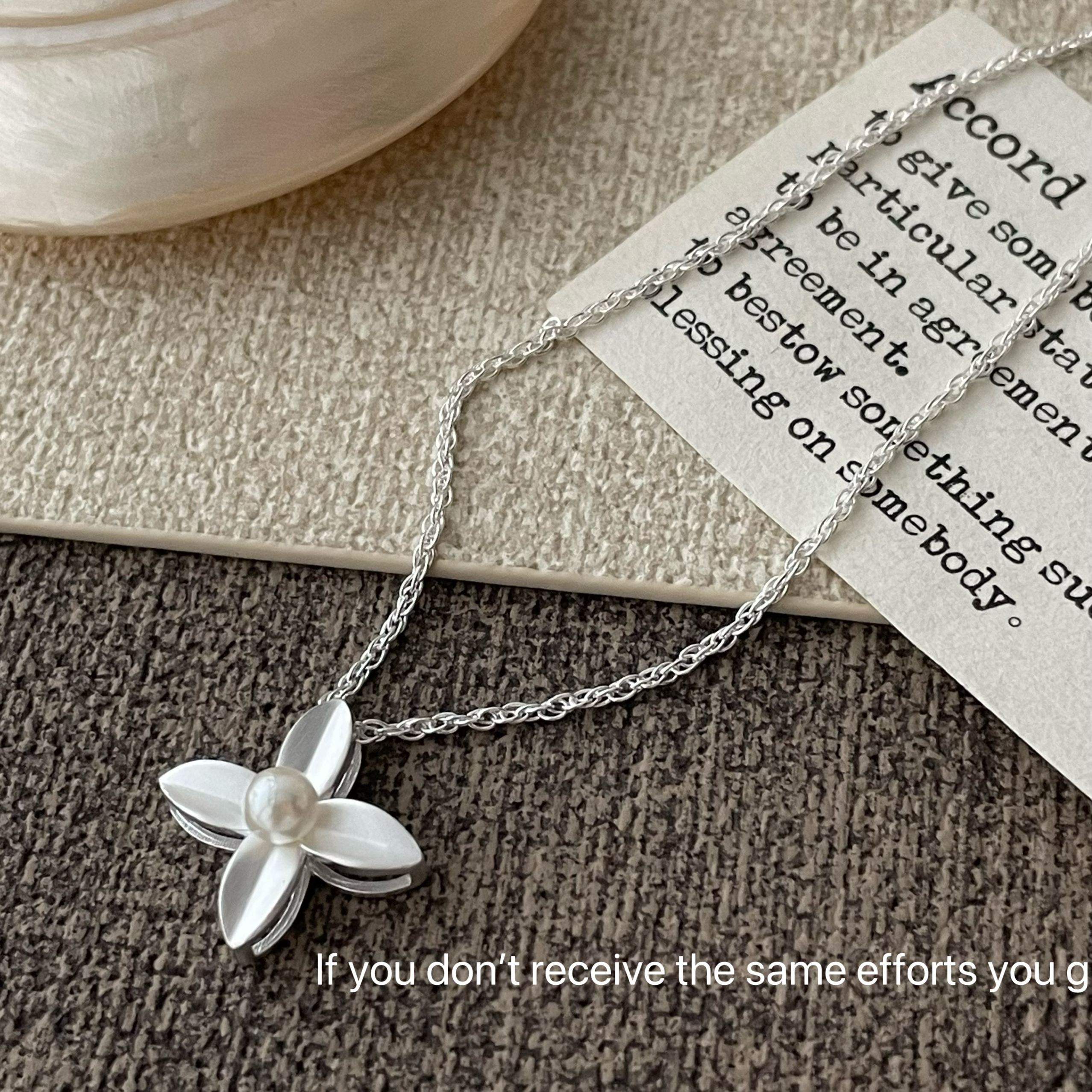 S925纯银四叶草珍珠项链女2025韩版新款时尚简约气质高级感锁骨链