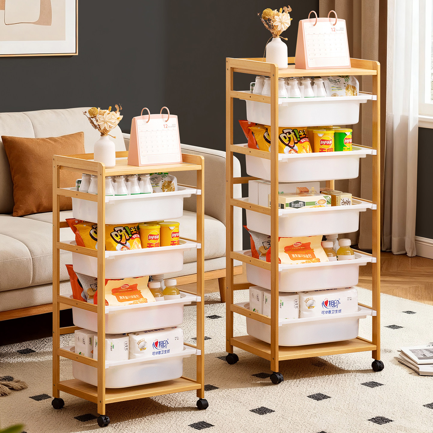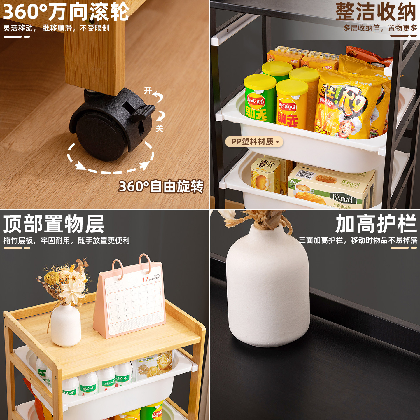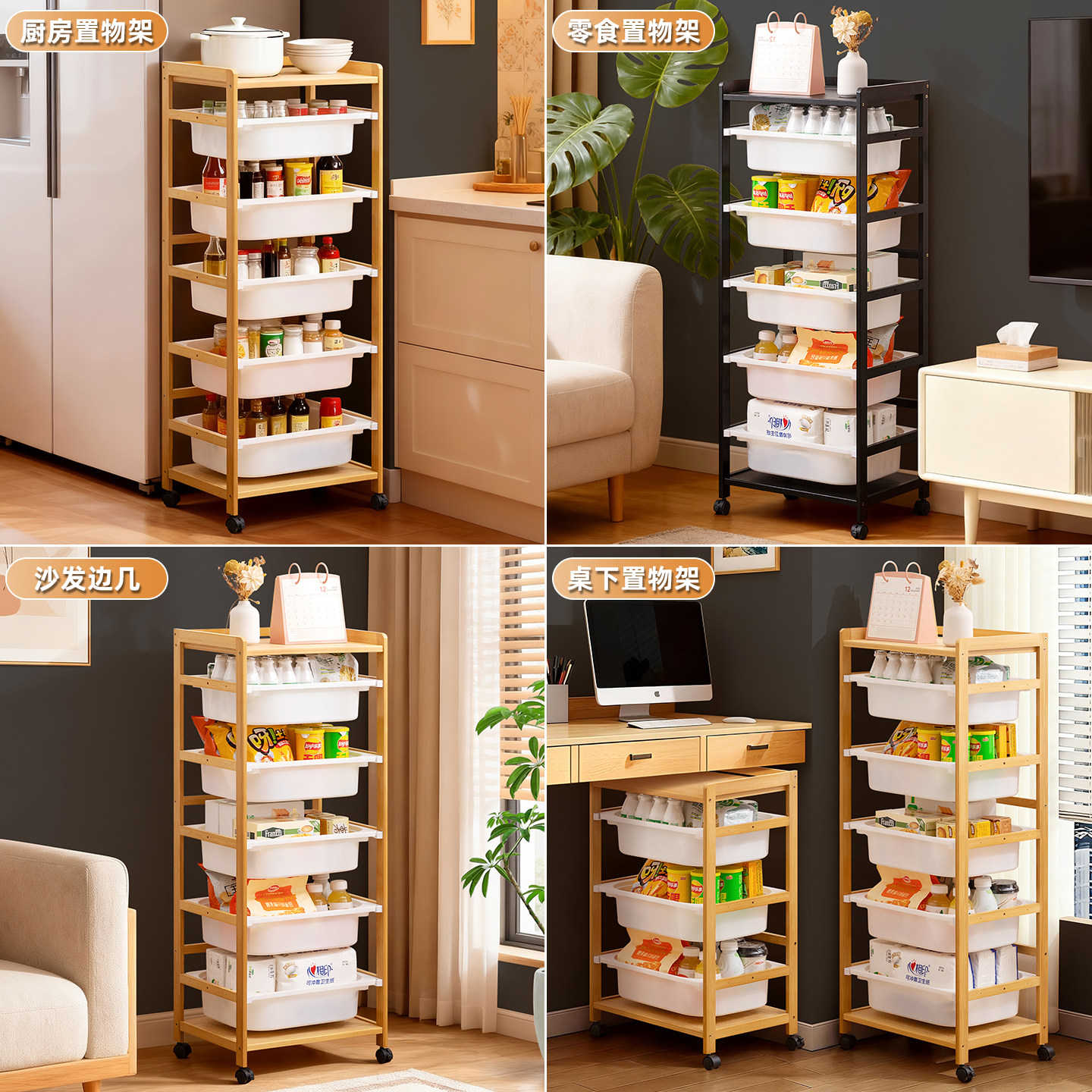 零食置物架小推车收纳架子落地多层客厅带轮移动储物架厨房整理架