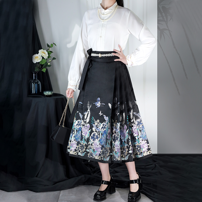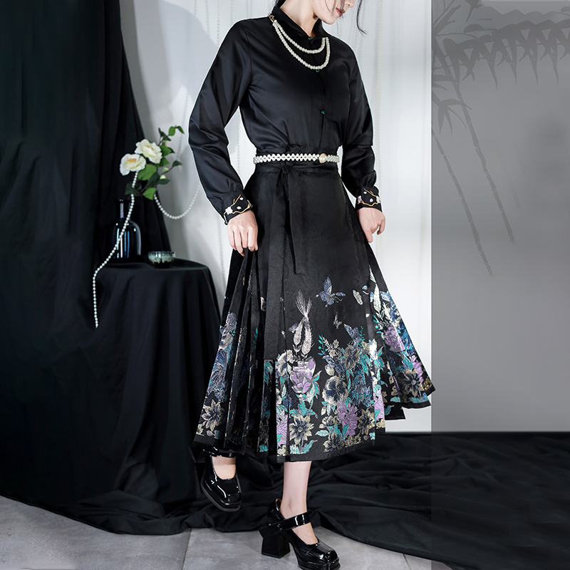 慕夏【步步生花】明制汉元素衬衣女八分黑色马面裙日常改良汉服夏