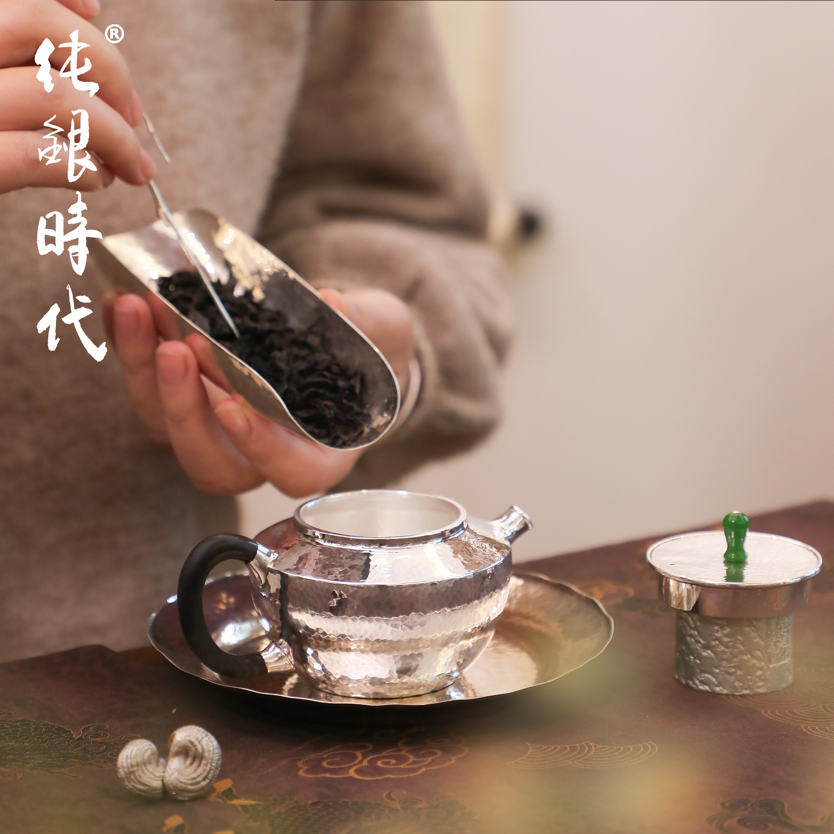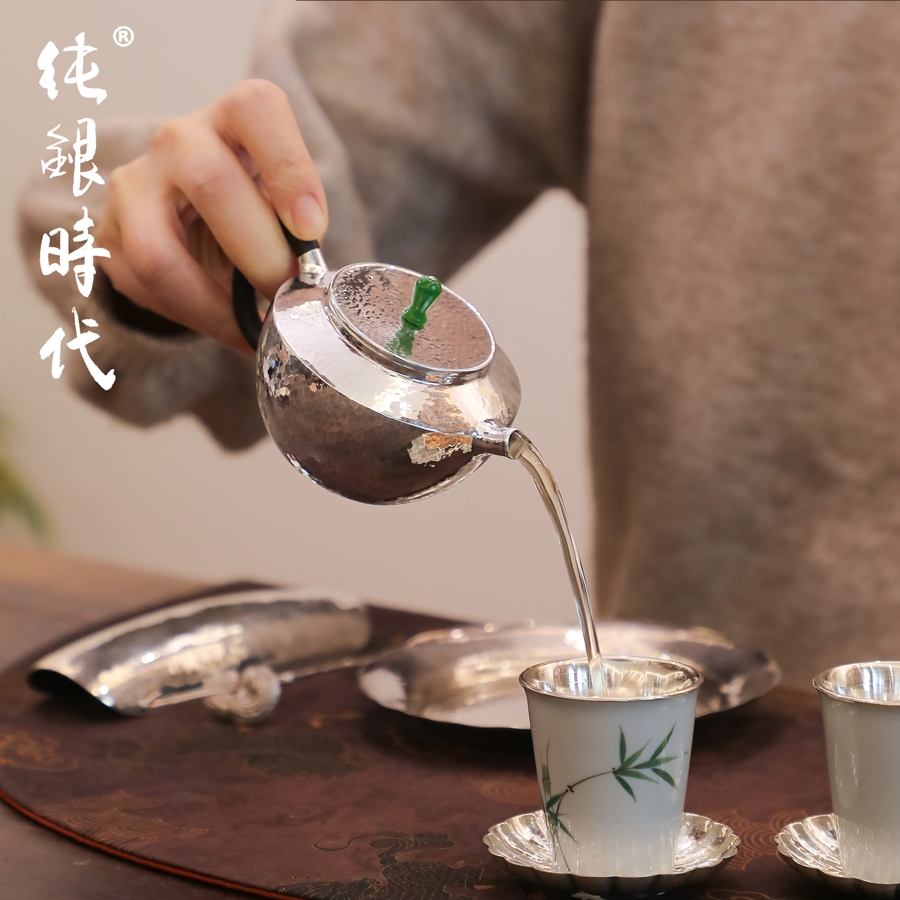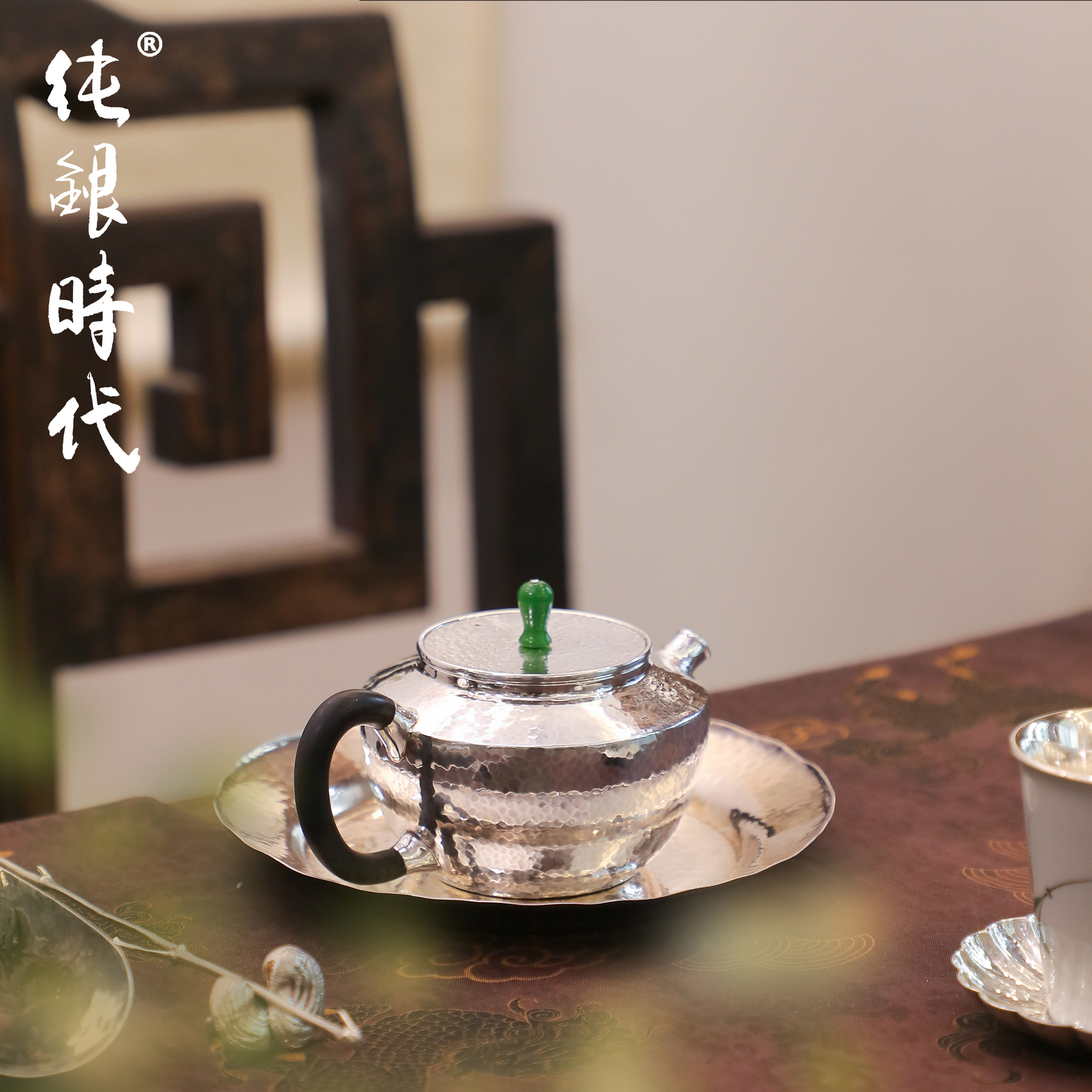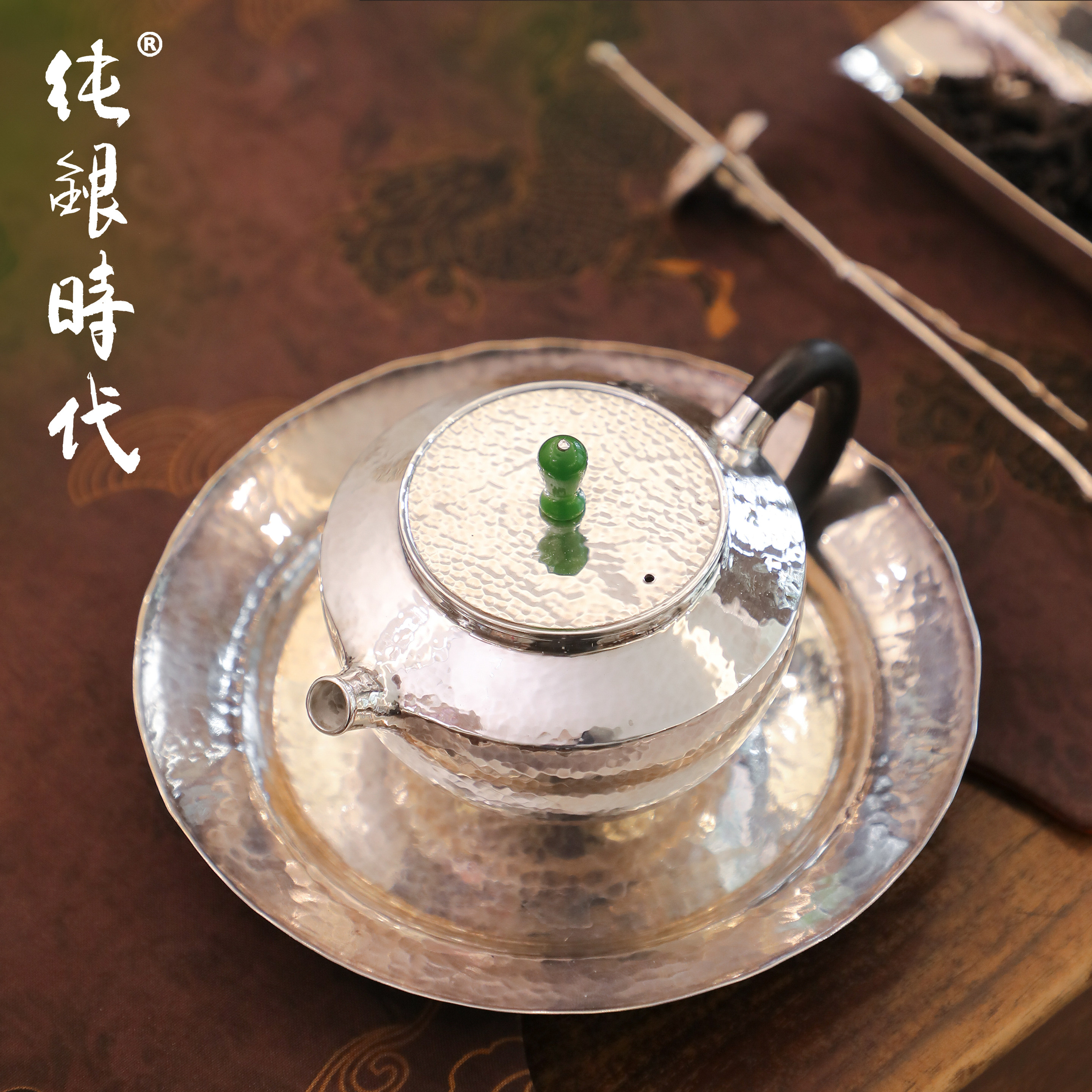 纯银时代纯银手工锤目纹简约银壶