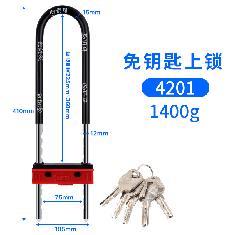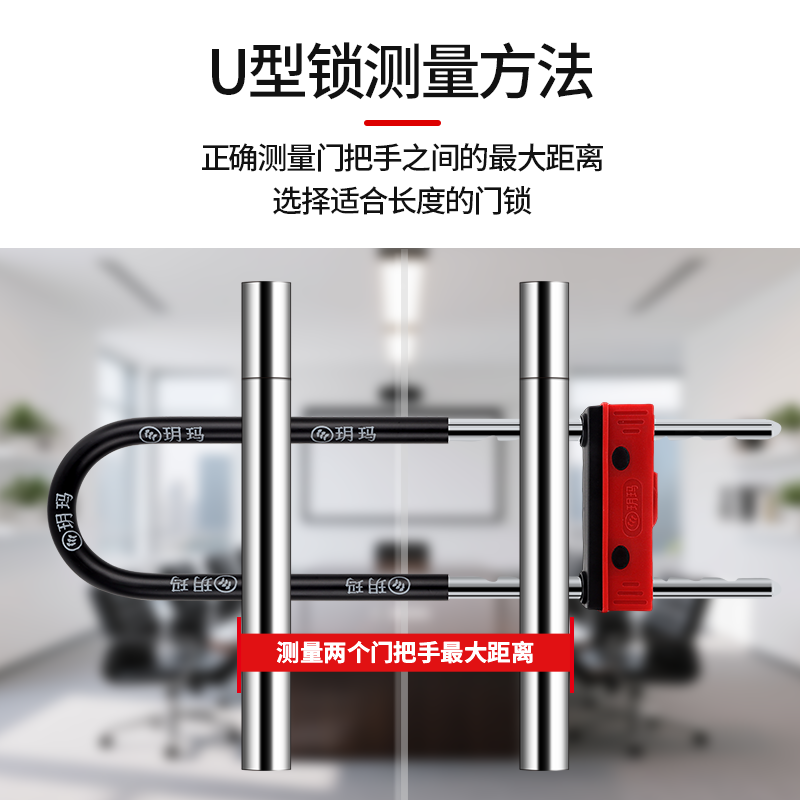 玥玛U型玻璃门锁商铺双开门插锁叶片铜心u形锁防盗摩托车锁免钥匙