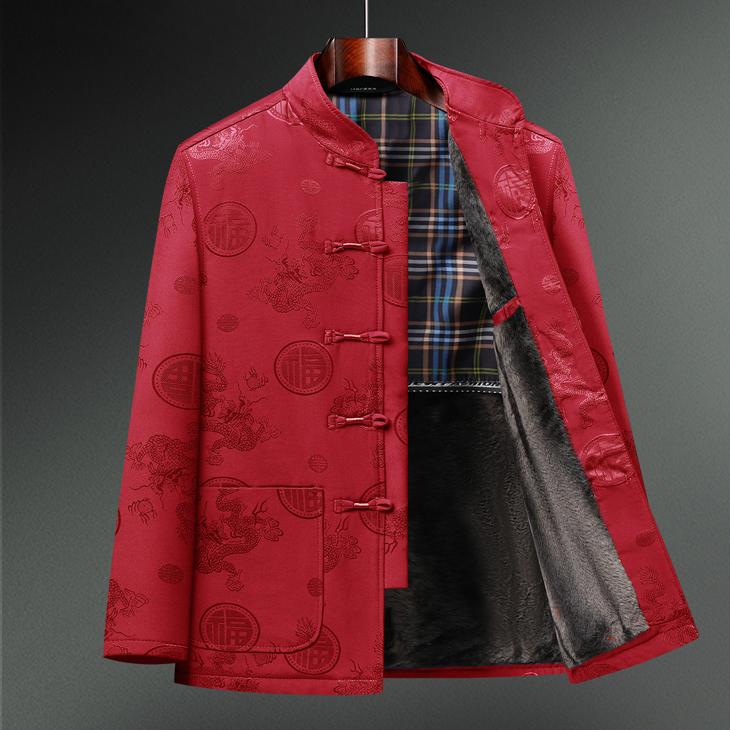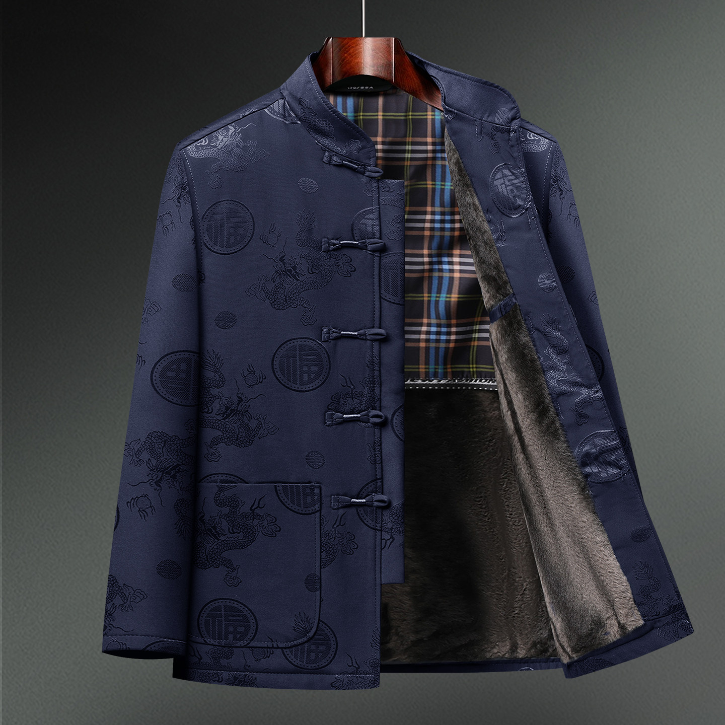 唐装男中老年人爸爸婚礼服加绒加厚棉衣外套爷爷生日寿宴冬装棉袄