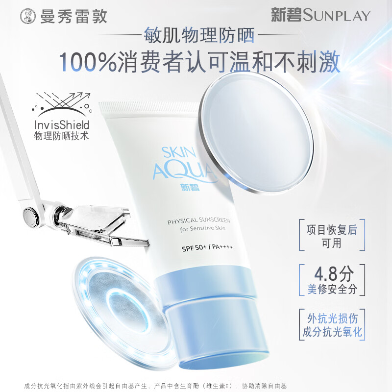 【下拉领补贴】曼秀雷敦新碧小粉帽物理防晒霜敏感肌面部温和隔离