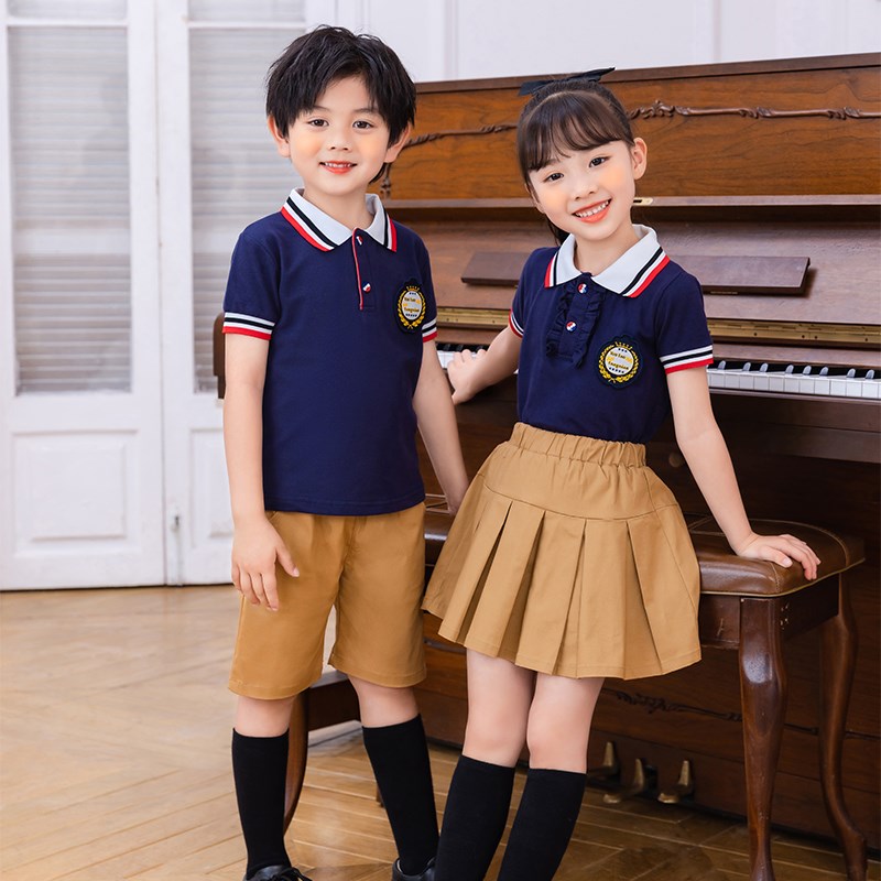 新款夏季儿童英伦学院风短袖套装幼儿园园服小学生班服校服合唱服