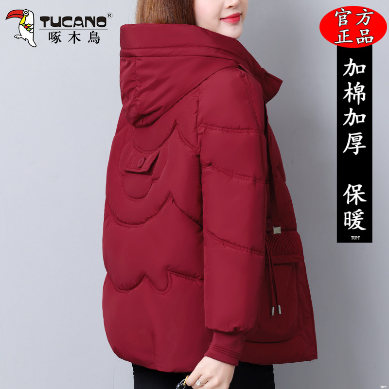 啄木鸟连帽棉服女士冬季新款时尚棉袄中老年妈妈洋气棉衣保暖外套