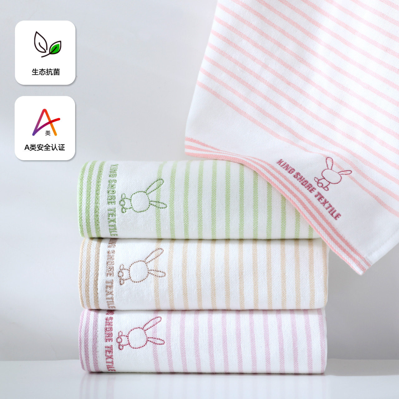金号毛巾浴巾防螨抗菌纯棉双层纱布吸水条纹洗澡洗脸2025新款全棉