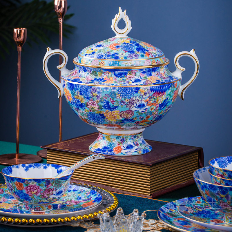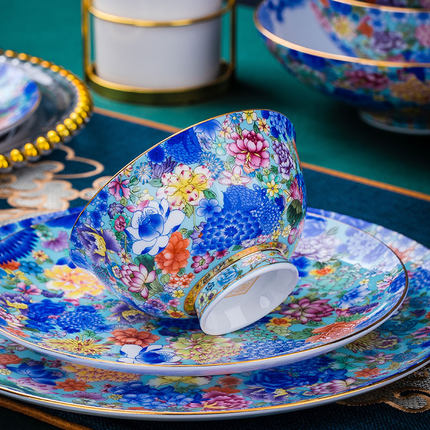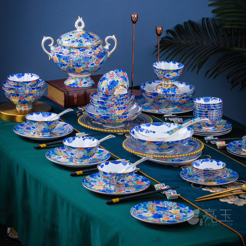 亮玉骨瓷套装组合珐琅彩金边餐具